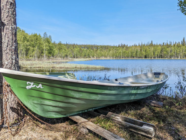 Rowing boat on the shore of lake Vuosselinjärvi 400 m away by walking along the bottom of the ski rack or 1 km away by car along the road. Available are: Buoyancy vest 70-90 kg 2 pcs, 60-70 kg 2 pcs, 40-60 kg 1 pc. Life jackets 20-30 kg 1 pc, 10-20 kg 1 pc. Log cottage area in Kohokuja -road, east side of Ruka. Nearest ski lift RukaExpress, nearest restaurants Ski Bistro and Camp Kitchen & Bar.