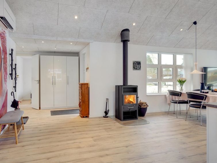 "Jurien" - 450m from the sea in NE Jutland", 3 rom hus 100 m2. Passer for 6 voksne + 1 barn. Stue med, TV og DVD. 1 rom med, 1 dobbeltseng. 1 rom med, 1 dobbeltseng. 1 rom med, 1 dobbeltseng. Kjøkken (stekeovn, oppvaskmaskin, 4 induksjonskomfyr, mikrobølgeovn). 2 dusjer/WC. Fasiliteter: barneseng (ekstra). Internett (trådløs LAN [WLAN]). Vennligst merk: røykfri bolig.