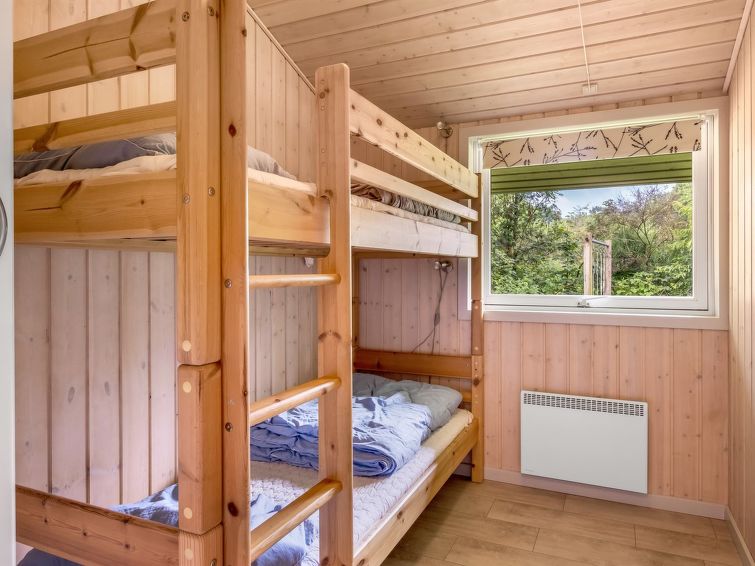 "Jutta" - 28km from the sea in Western Jutland", 3 rom hus 68 m2. Passer for 6 voksne + 1 barn. Stue med, TV, radio, CD-spiller og DVD. 1 rom med, 1 dobbeltseng. 1 rom med 2 senger. 1 rom med, 1 x 2 køysenger. Kjøkken (stekeovn, oppvaskmaskin, 4 keramiske kokeplater, mikrobølgeovn, frys). Dusj/WC. Terrasse 9 m2, dekt. Fasiliteter: høy barnestol barneseng (ekstra). Internett (trådløs LAN [WLAN]). Vennligst merk: røykfri bolig. Max kjæledyr / hund tillatt 1 kjæledyr / hund tillatt.
