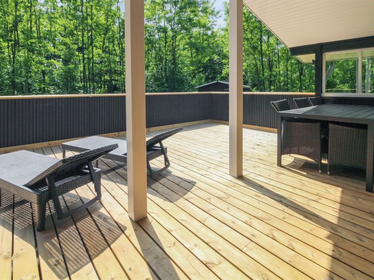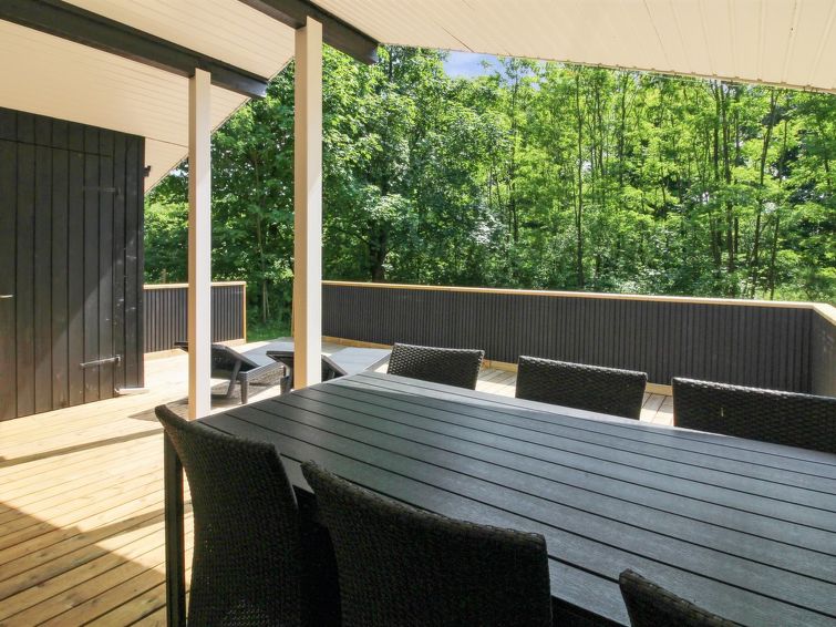 Ferielandsby, bygget i 1977. 28 km fra sjøen. Privat: uberørt tomt 875 m2. Grill, lekeplass (huske). I huset: vaskemaskin. Parkering ved hbrukt. Daglivarehandel 1 km. Eieren godtar ikke noen ungdomsgrupper.
