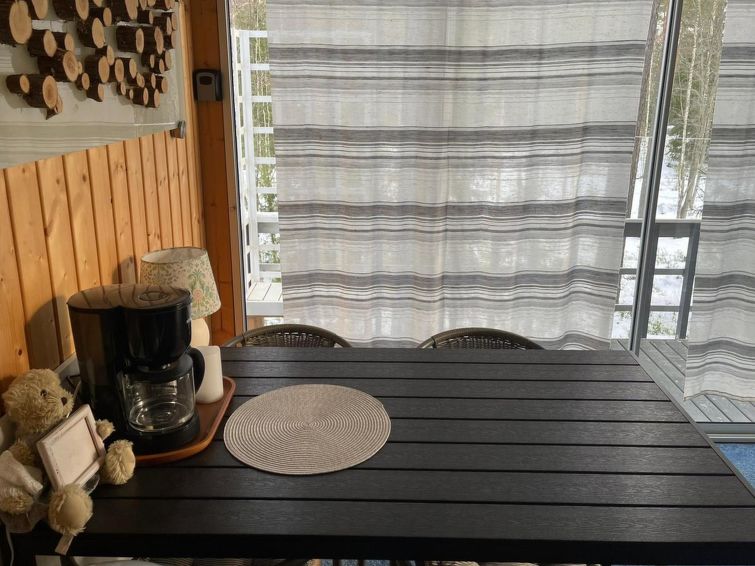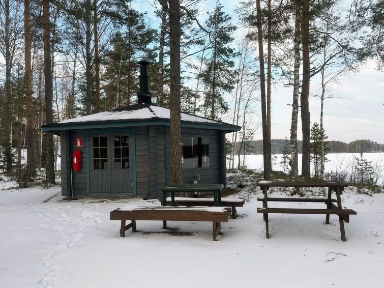 Wooden cottage 2004, renovated in 2013 (with the exception of sauna), kitchen-living room, bedroom with two beds, bedroom with 2 beds, a loft with mattresses for 2 and living area, TV (loft floor area of 13 m²), sauna (electric stove), washroom with showe and toilet, dressing room, porch (13 m²), terrace. Cottage is situated in Hillosensalmi in a cottage village, in a area of 8 hectares, there are about 40 cottages, all privately owned.
