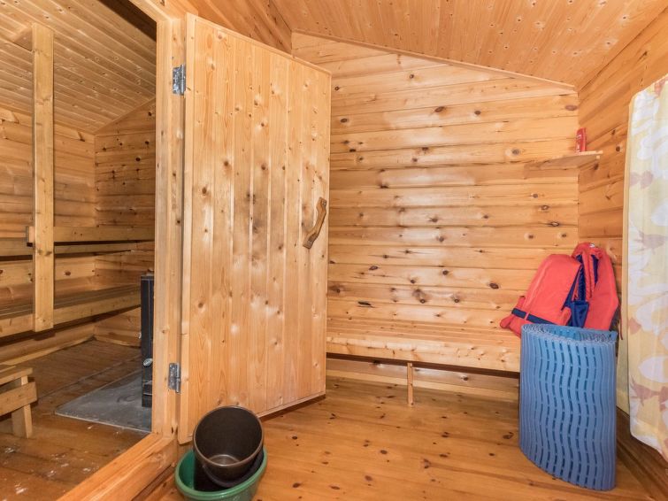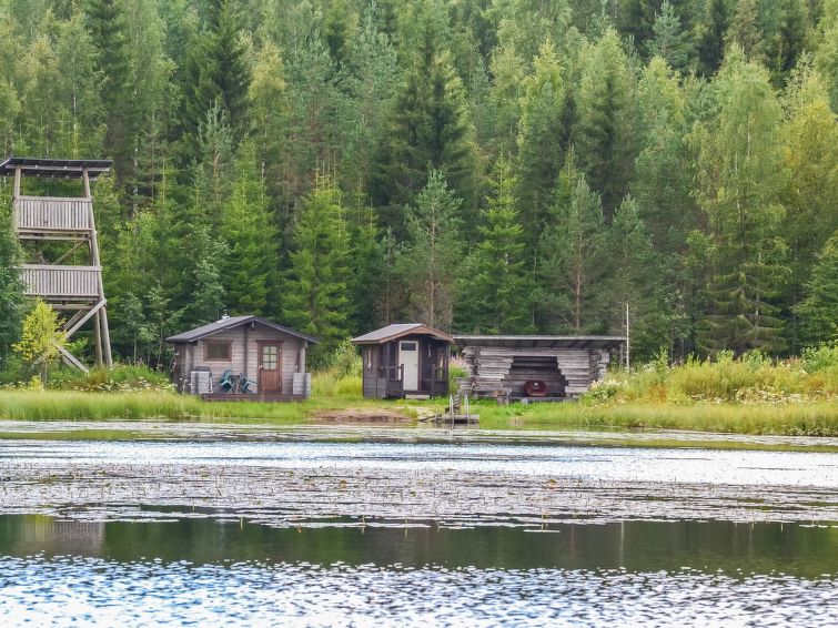 Shallow sand beach 80 m, for summer use only; separate lakeside sauna (wood-fired sauna stove), pier, rowing boat, campfire site, lean-to and an observation tower made from log wood.