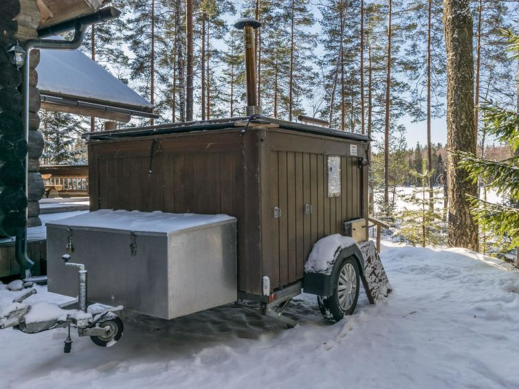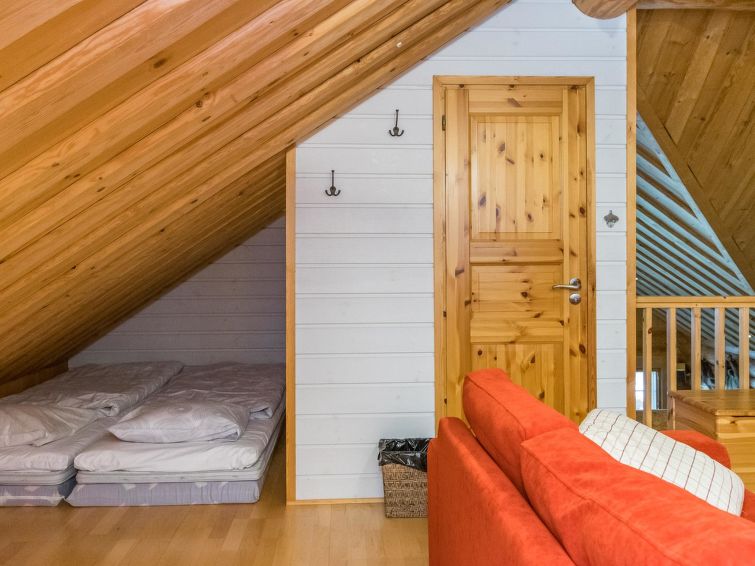 The hall on the upper floor has a comfortable sofa, TV, DVD player and two mattresses, so you can relax and spend time together. On the upper floor, there is a bedroom with four beds, so the cabin can accommodate even a larger group. In the cooking hut located on the beach, you can prepare tasty meals and enjoy them surrounded by wonderful landscape. At Kaidan Kunkku, it is possible to rent a smoke sauna from the owner, the heating of which costs 175 euros. Mobile hot tub is available for rent from the owner, the price starts at 90 euros per day (please check the availability from the owner, it is rented between several cabins).