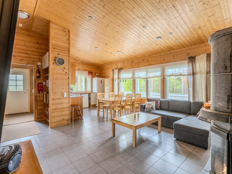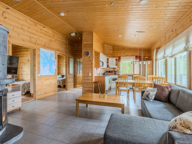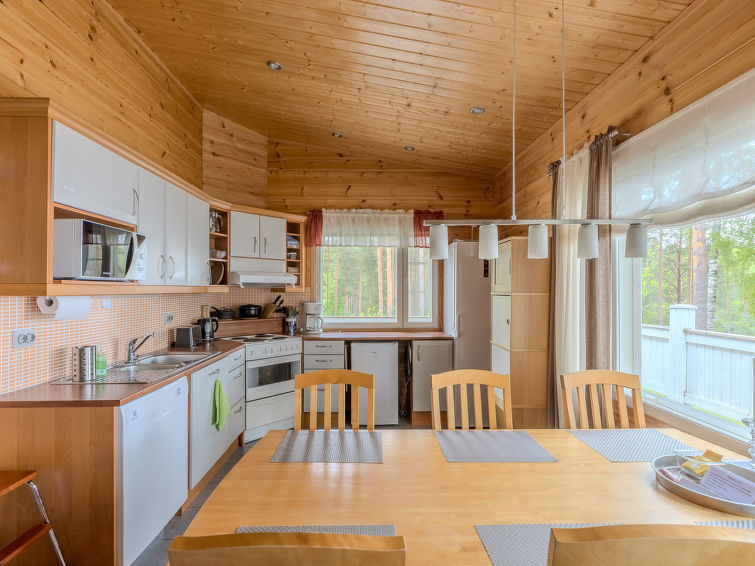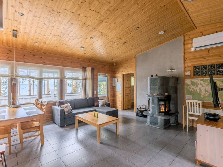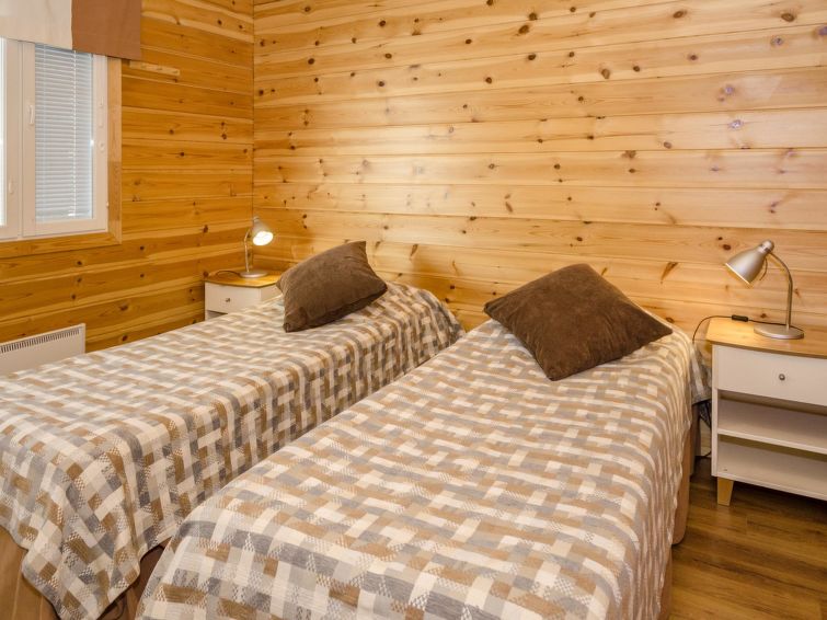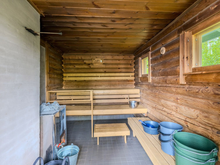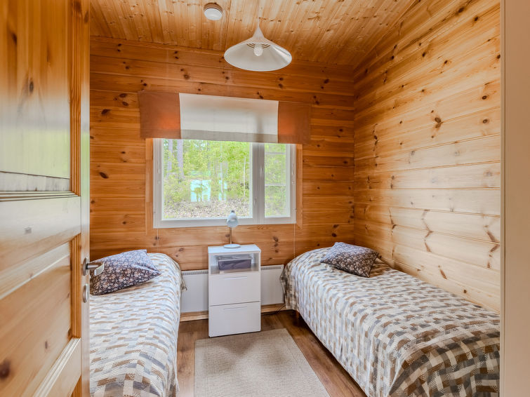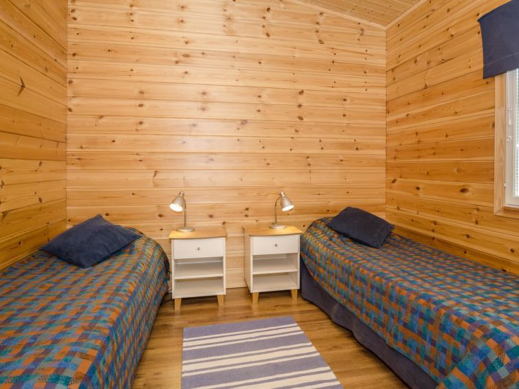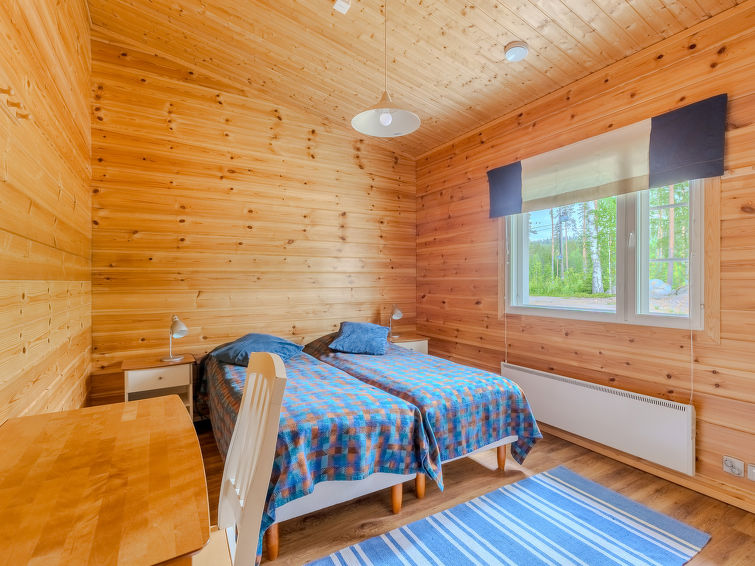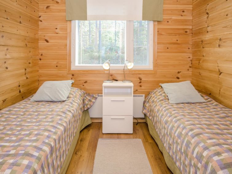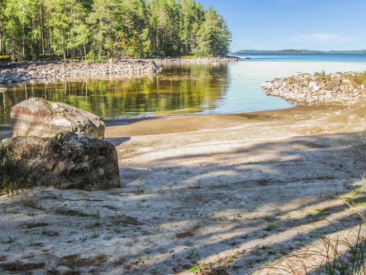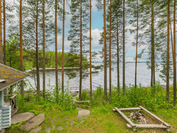 77 km north of Joensuu, Lake Pielinen 40 m (871,2 km2) own beach with deep bottom and some rocks and partly sand, own boat and jetty. Log cottage 2006, kitchen-living room with divan, bedroom with two beds, bedroom with two beds, bedroom with two beds, household room – dressing room, washroom, sauna (elec. stove) and terrace. There is an own, separate sauna by the shore with dressing/fireplace room. Steep slope to the shore. Water for the sauna fetched from the lake. Spacious log cottage by Lake Pielinen in Koli. Good possibilities for fishing; the rent includes boat. Separate beach with sand bottom 100 m, used together with the neighboring Kainaloranta cottage. The boat of the cottage is stored on a sandy beach, because the boat may chip into the the rocks, especially in windy weather. There is sign 1 on the boat.