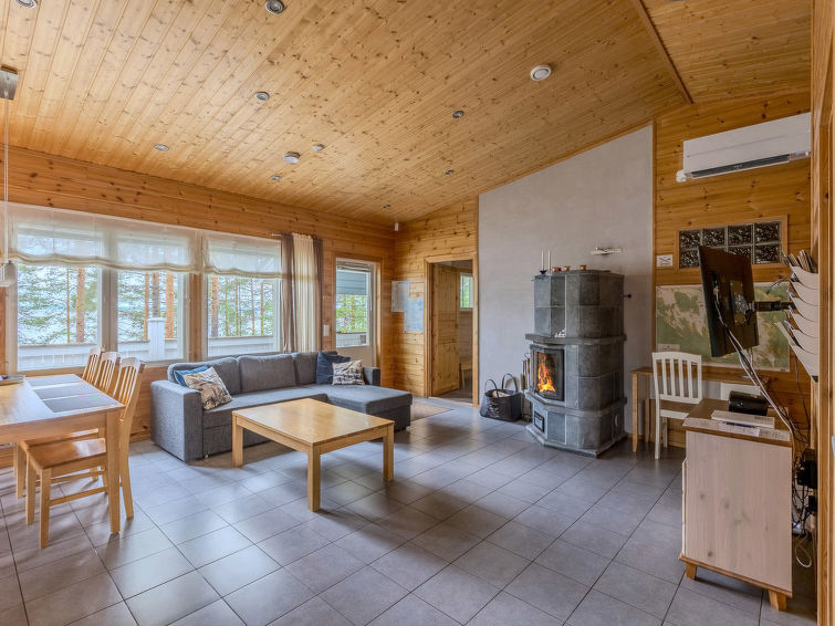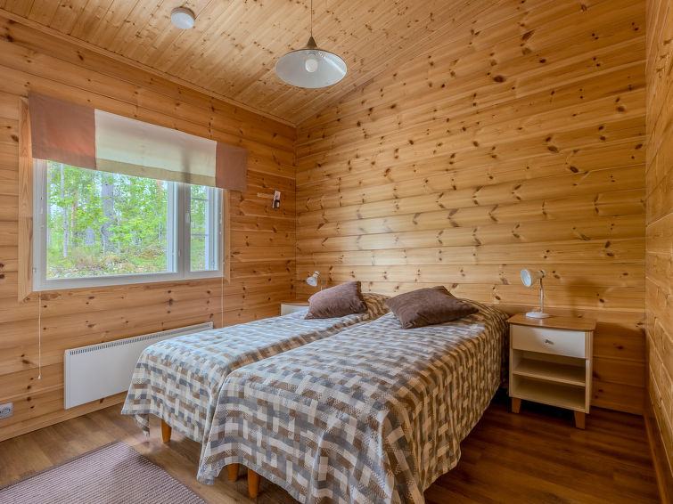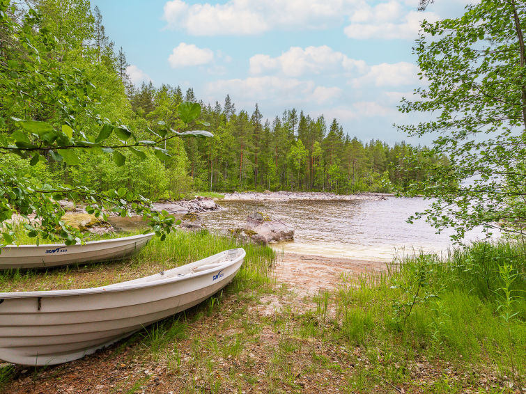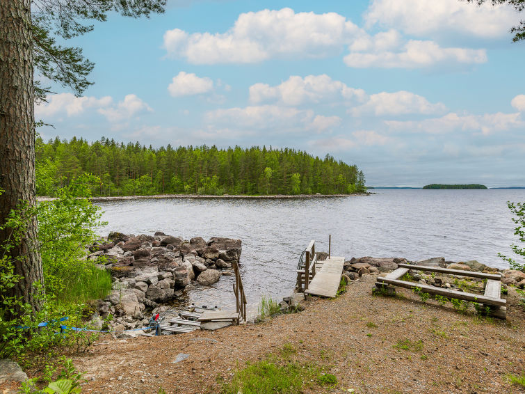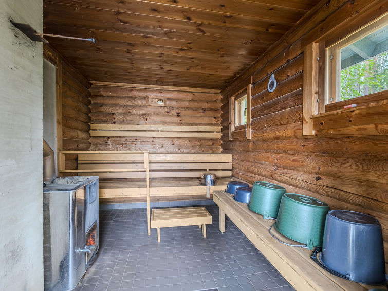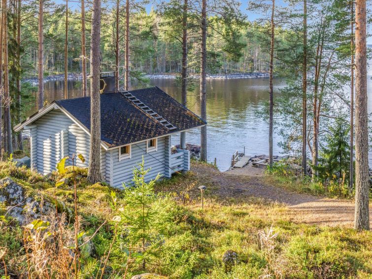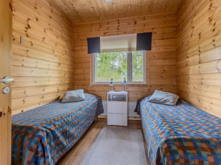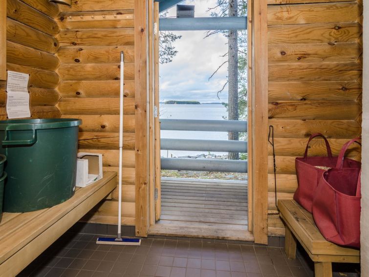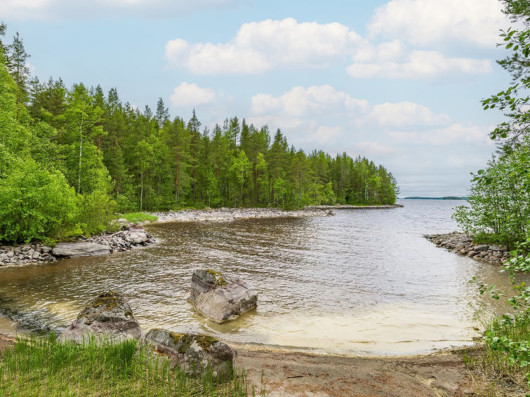 77 km north of Joensuu, Lake Pielinen (871,2 km2) own beach with deep and rocky/sandy bottom, own boat and jetty. Log cottage 2006, kitchen-living room with divan, bedroom with two beds, bedroom with two beds, bedroom with two beds, house hold room – dressing room, washroom, sauna (elec. stove) and terrace. Steep slope to the shore. There is an own, separate sauna by the shore with dressing/fireplace room. Water for the sauna fetched from the lake or inside the cottage. Spacious log cottage by Lake Pielinen in Koli. Good possibilities for fishing. Separate beach with sand bottom 150 m, used together with the neighboring Kainalolahti cottage. The boat of the cottage is stored on a sandy beach, because the boat may chip into the the rocks, especially in windy weather. There is sign 2 on the boat.