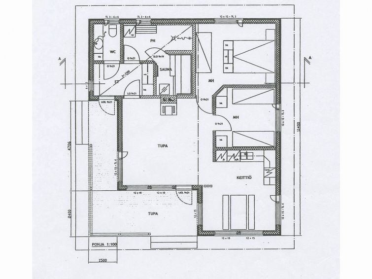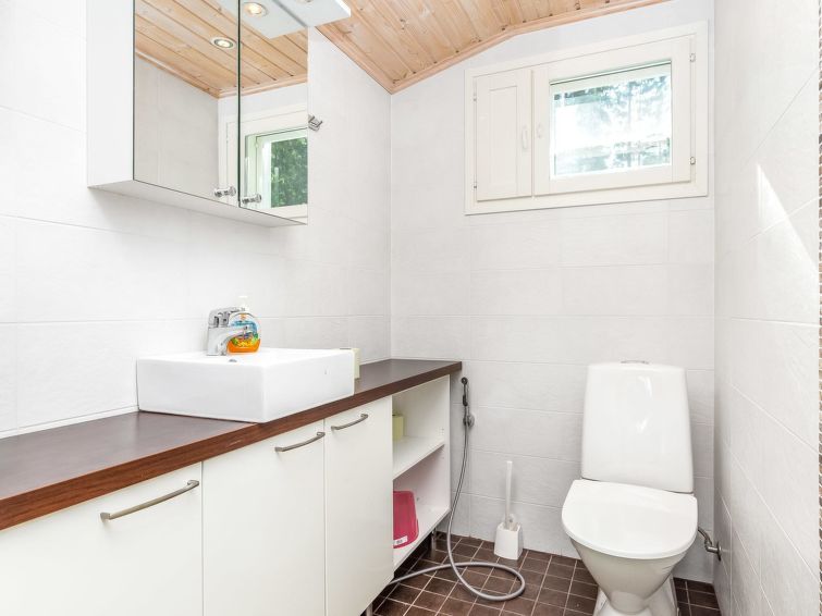 Wooden cabin 2011, living room/kitchen with convertible sofa for 2, bedroom (14 m²) two beds, bedroom (10 m²) two beds, washroom, sauna, separate WC.