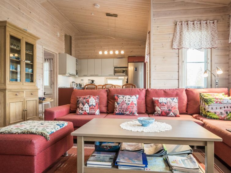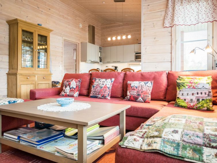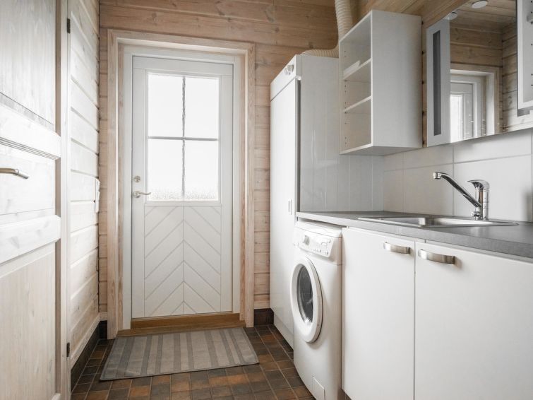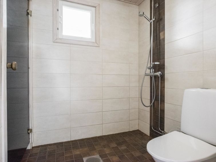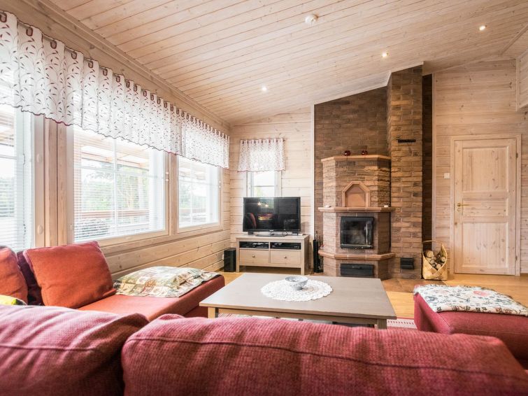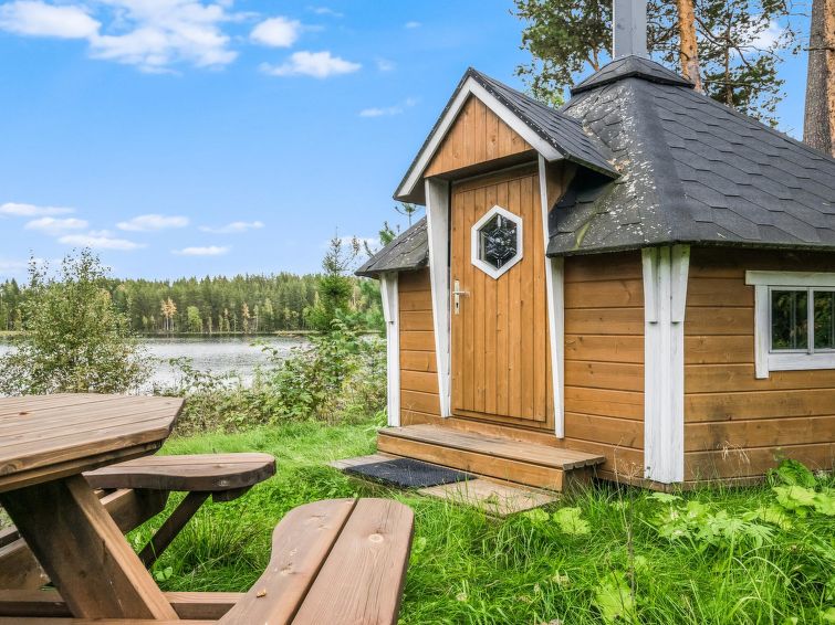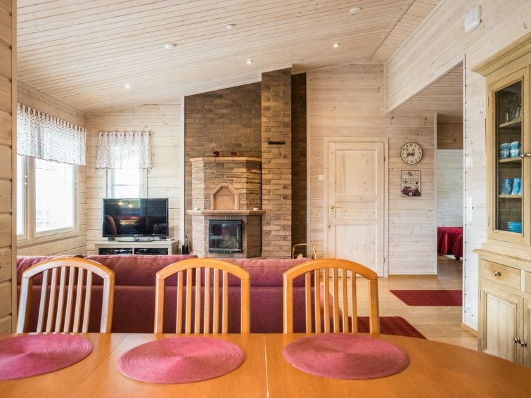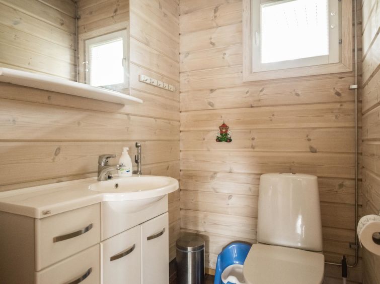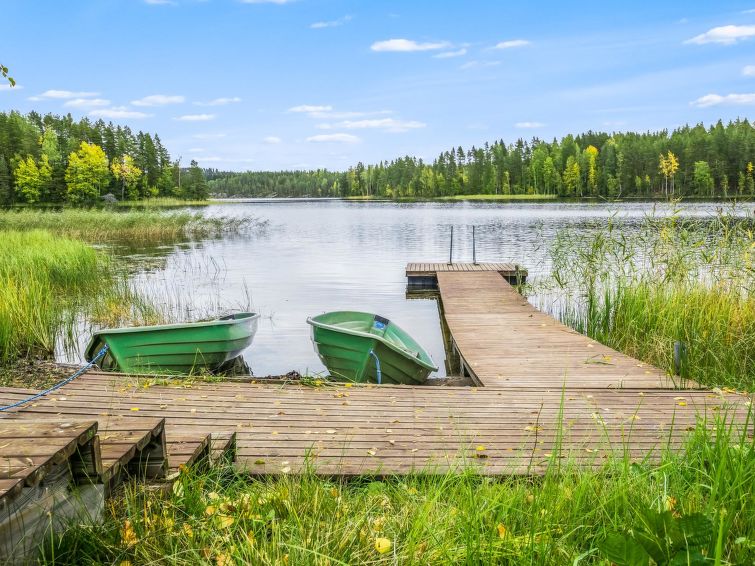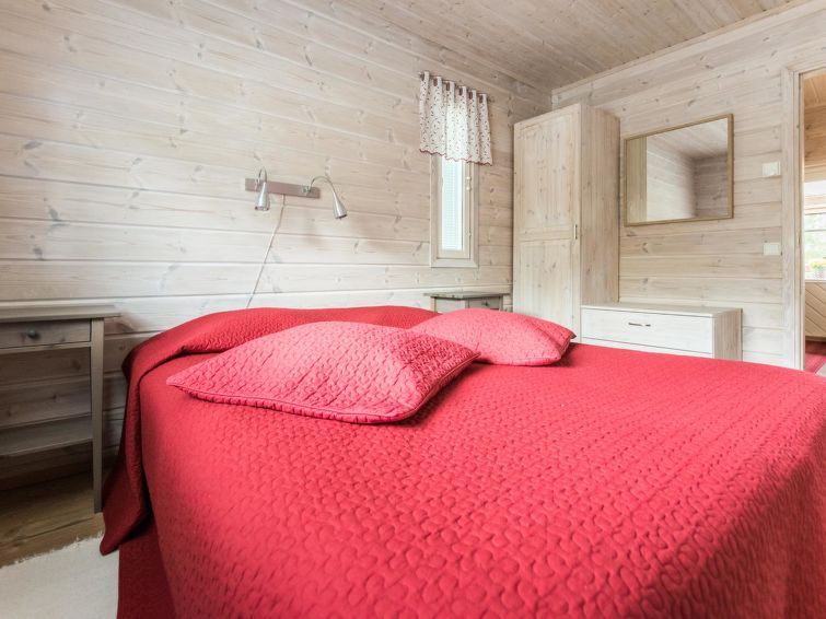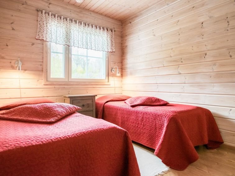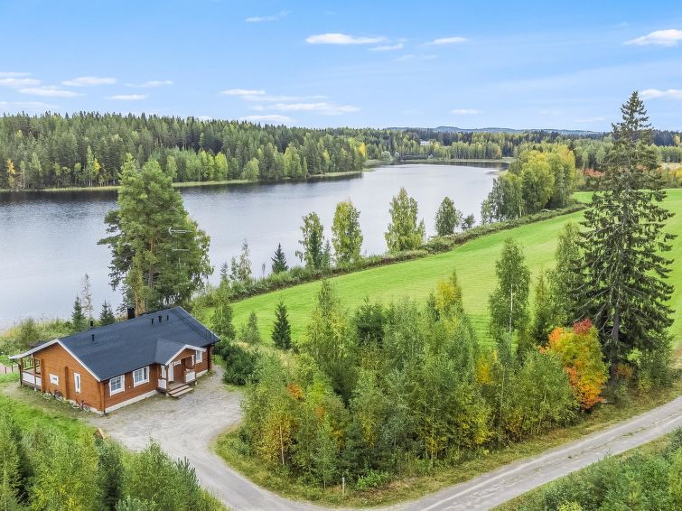 75 km northeast of Jyväskylä ,lake Liesvesi 40 m (length 8 km, width 1.6 km), shallow, hard sand bottom, boat. Log cabin 2011, three bedrooms, each with two beds, hall, vestibule, dressing room, washroom, electric sauna and spacious covered terraces. Access to terrace through kitchen and dressing room.