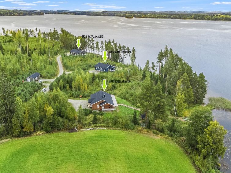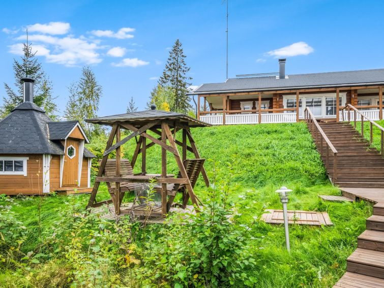 High class holiday house situated on slopes in beautiful lake landscape. From the terrace steps to the shore and barbecue. In the front of the holiday house there is an island, where opportunity to go ashore. The cottage has air conditioning, automatic fire extinguishing system, Satellite TV, Blu-ray disc player and a wireless Internet connection (speed 5 Mb). In the kitchen induction stove ,rain shower in the bathroom. Rent includes two bicycles, electric outboard motor and use of 2 ‘katiska’ fish traps. Rapids for lure fishing in a distance of 4 km. Company offering fishing, hunting and canoeing as well as guidance services. Konnevesi 17 km, Revontuli Golf 35 km, ski center Häkärinteet 35 km, Jyväskylä airport 56 km.