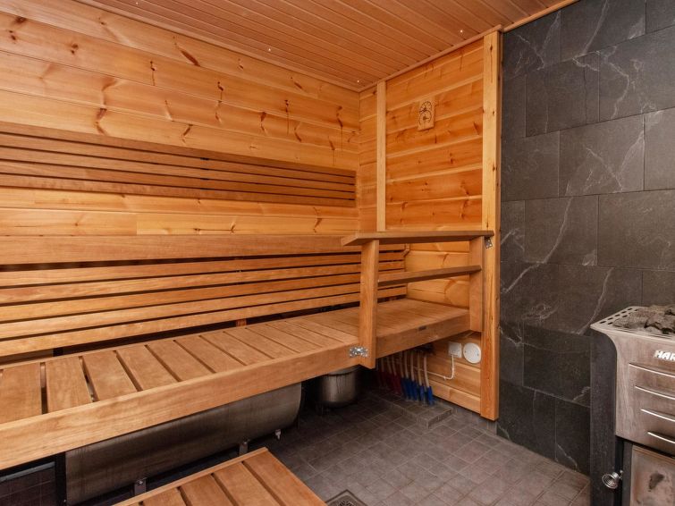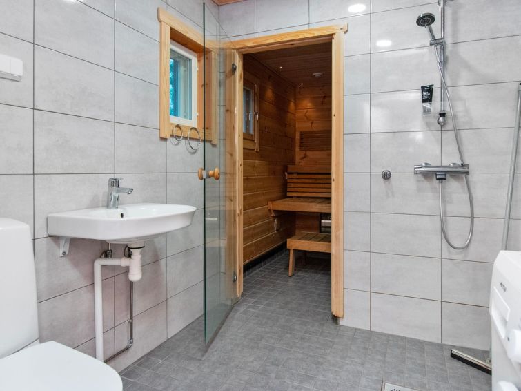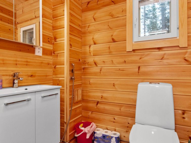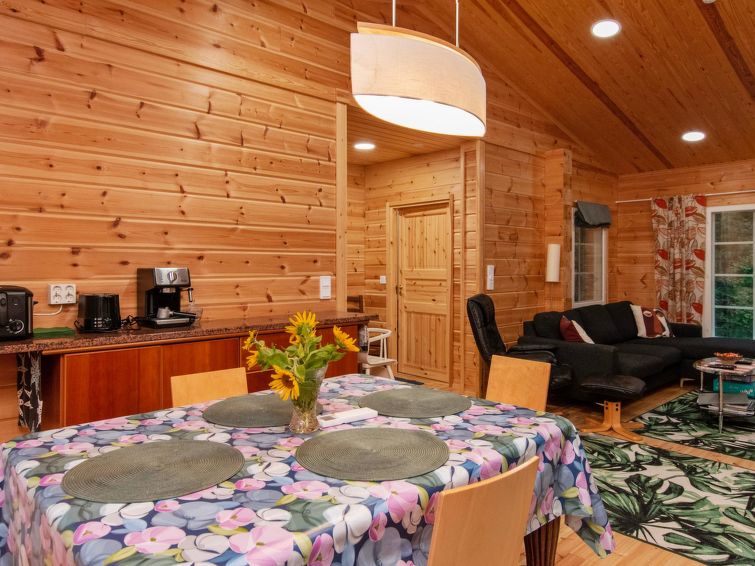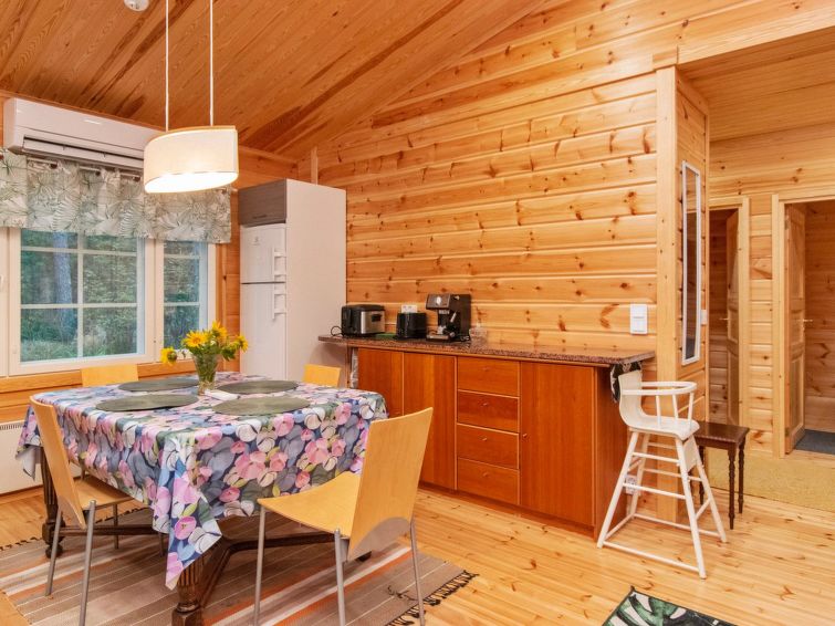 Laminated log cabin 2021, living room/kitchen, bedroom with double bed, another bedroom with two beds, sauna, washroom, dressing room, separate WC, terrace. Air source heat pump with cooling function.