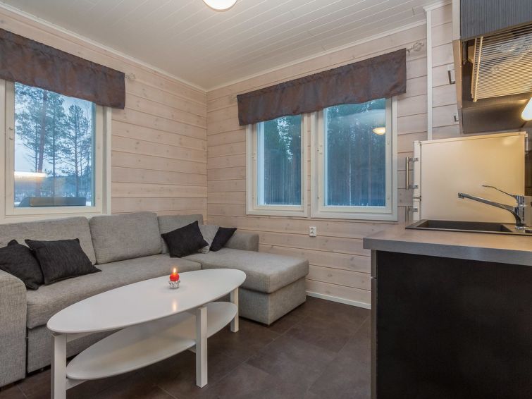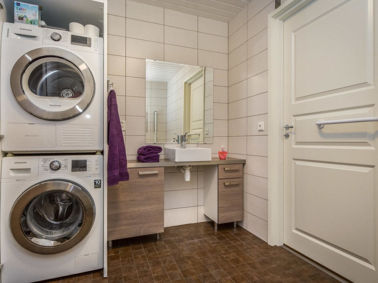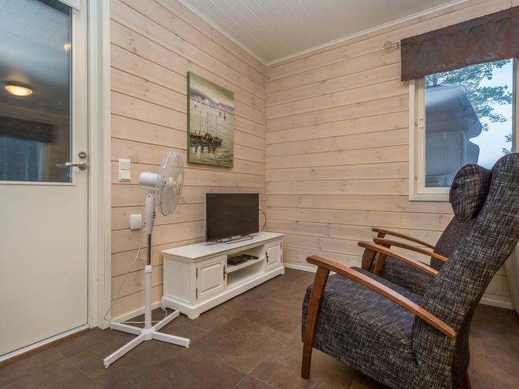 Separate space with own entrance, kitchenette and sofa bed (two extra beds), washroom with shower and WC, electric sauna stove in the sauna. Entrance to the separate space is from the covered terrace.