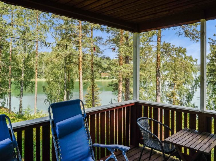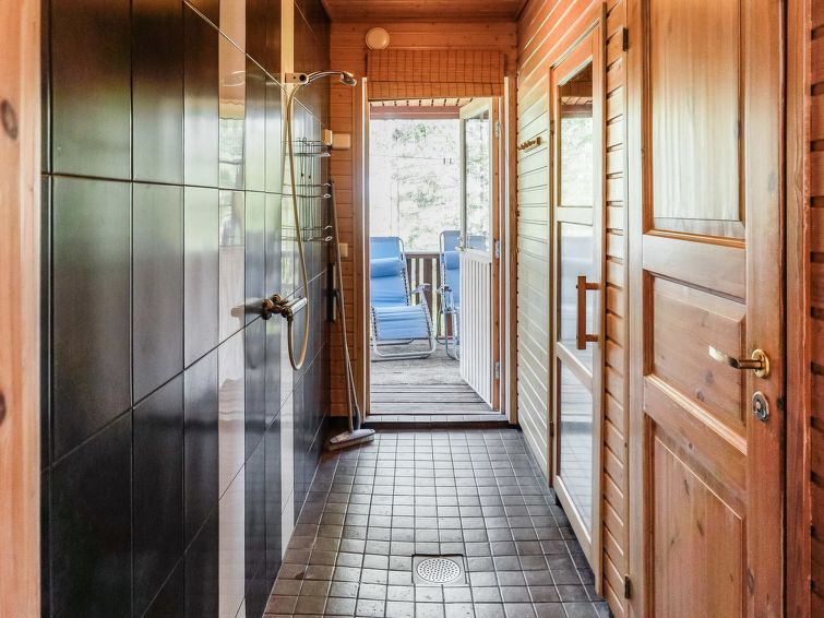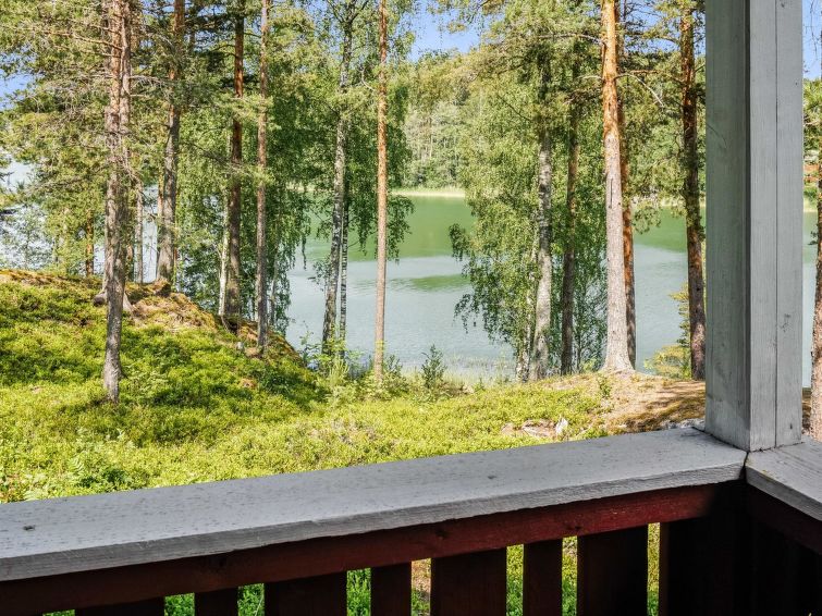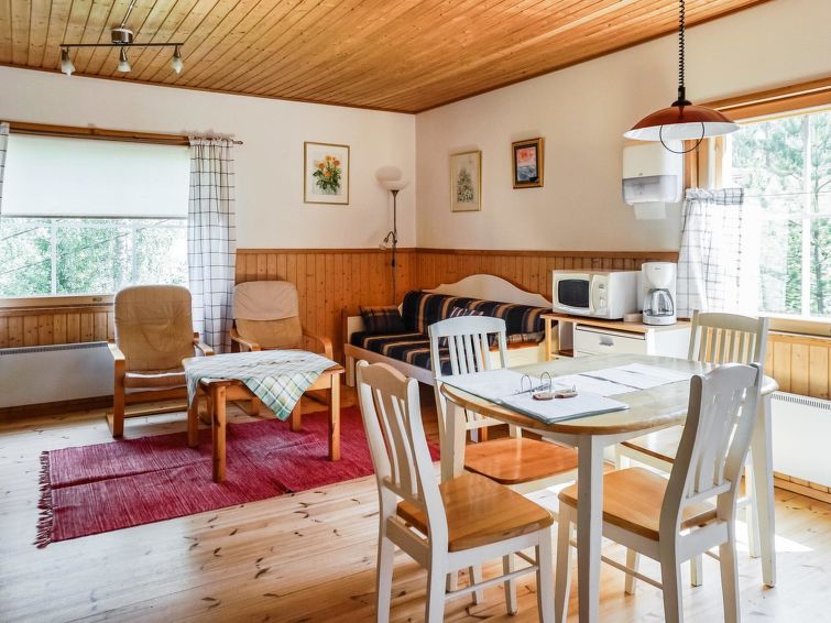 40 km south of Turku, Turunmaa Archipelago sea/Airisto 60 m, public shore with deep shore, hard sand bottom, own boat. Wooden cottage 2006, living room/ kitchen 1 extra bed, bedroom 2 beds, sleeping loft 2 beds (steep stairs to loft ), washroom, WC=ecowc, sauna (elec. stove), open porch. Cottage located in village with 6 other cottages (8031-8037). Cottages share shore and 2 jetties. Plots are level, rather steep slope to shore.