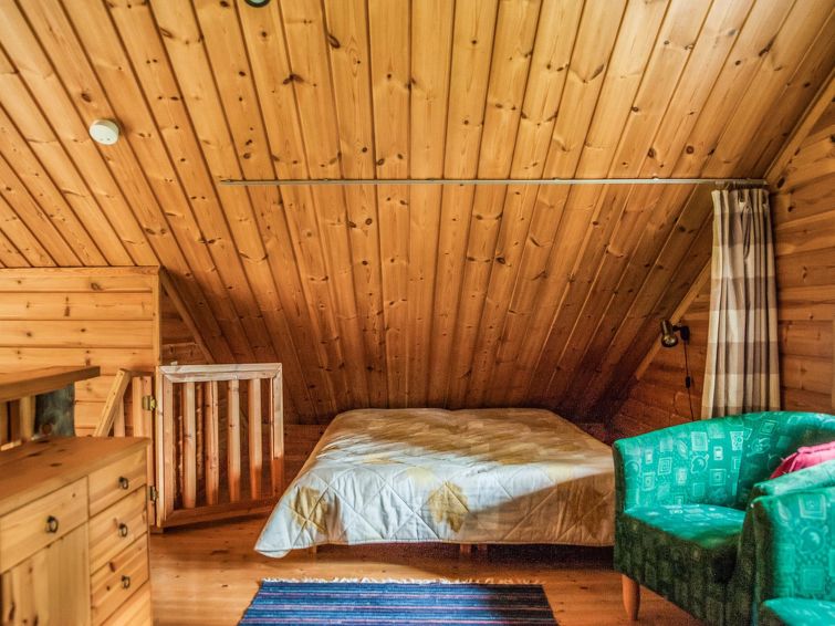 25km north of Kuusamo, Vuosseli (Eastern Ruka) 150m. Cosy log cottage, built in 1997, bedroom: 2 beds, loft: 2 + 2 beds, combined kitchen/living room, wash room and electric sauna. Area 56 m² of which 9 m² on the loft. Child safety gate on the loft.
