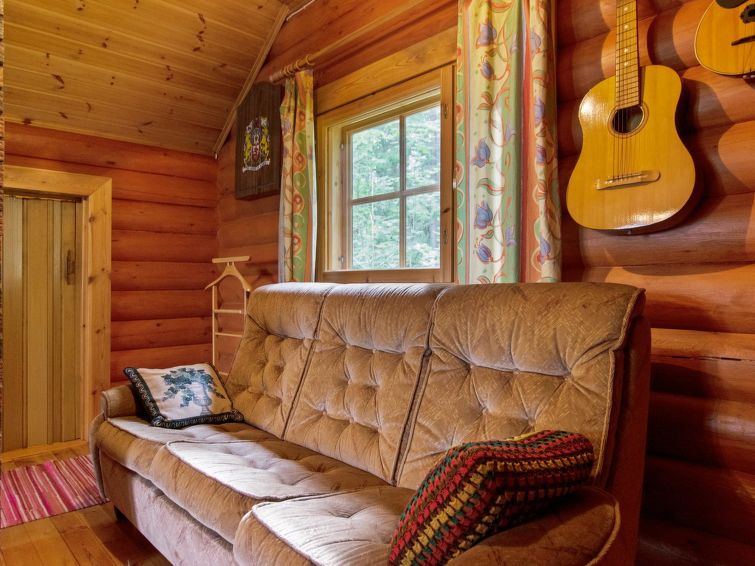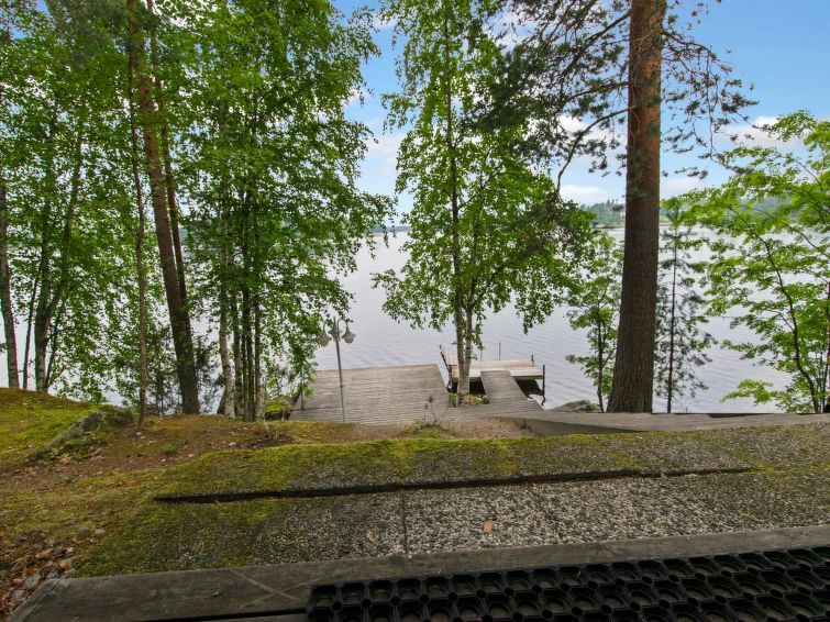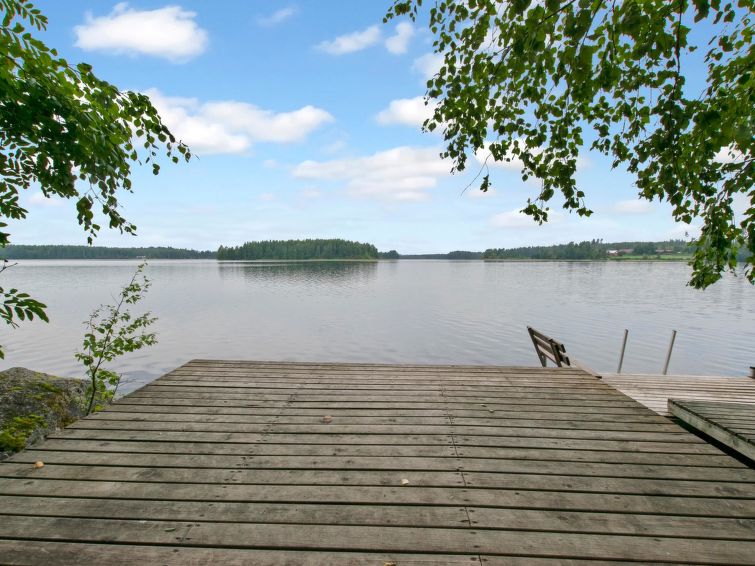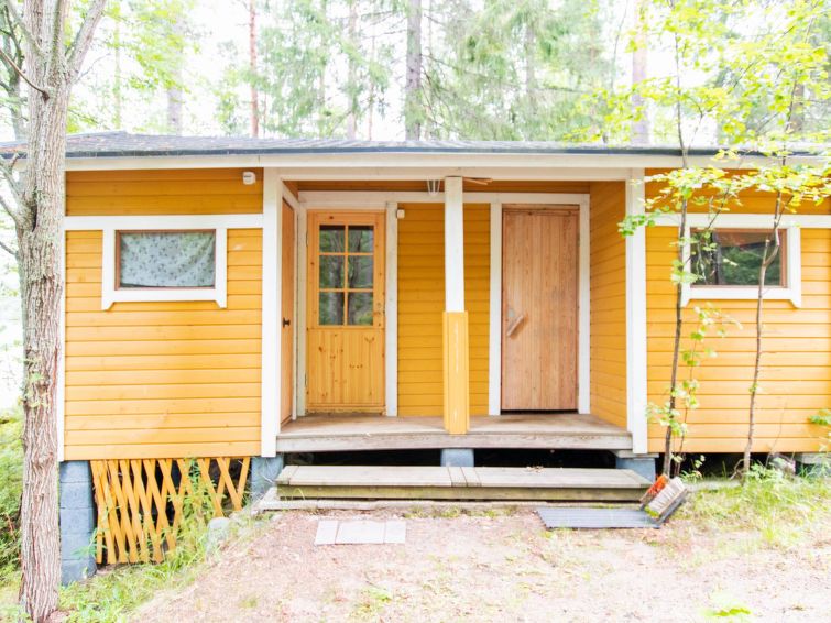 NOTE! Maximum for 6 persons only! Maximum number of pets 2 (for bringing more must be agreed with the owner in advance). Cottage located on steep, stony slope on shore of clearwater, fish-rich Lake Pyhäjärvi, natural state yard. Car parking about 40 m above the cottage. This is the clearest, low-nutrient lake on the Saarijärvi watercourse, water is drinkable. In front of cottage a level, roofed terrace with gas grill on the slope, steps down to lakeshore sauna, shore has large jetty platform and swimming jetty with benches and swim ladder. In the summer in the price is included 2 ‘katiska’ fish traps and rods for fishing with worm bait. Outdoor games like Mölkky, dartboard available.