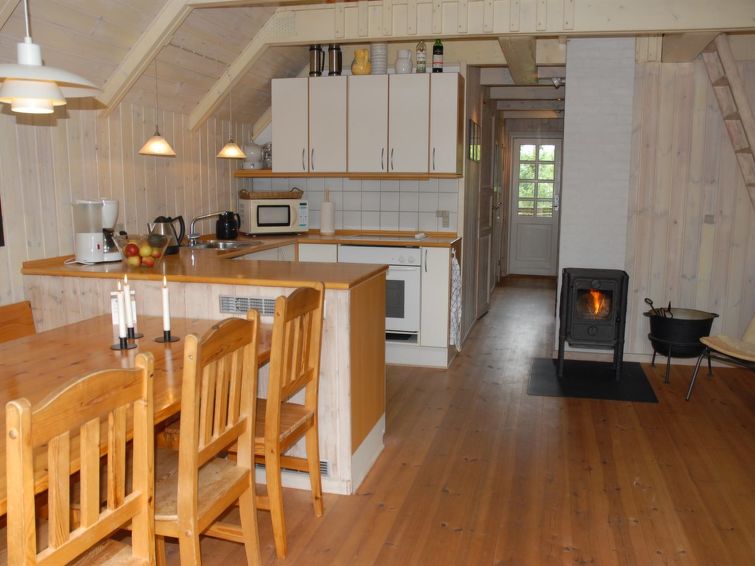 "Kalv" - 75m from the sea in SE Jutland", 2 rom hus 54 m2. Passer for 6 voksne + 1 barn. Stue med, 1 dobbel sovesoffa, TV, radio, stereoanlegg og DVD. 1 rom med, 2 sovesoffaer. Kjøkken (stekeovn, oppvaskmaskin, 4 keramiske kokeplater, mikrobølgeovn, frys). Dusj/WC. øverste etasje: åpen galleri med, 2 sovemuligheter. Terrasse 8 m2, dekt. Av viken. Fasiliteter: høy barnestol barneseng (ekstra). Internett (trådløs LAN [WLAN]). Vennligst merk: røykfri bolig.