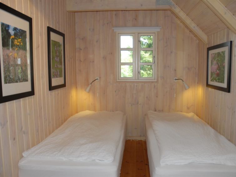 Enmannsbolig, bygget i 1998. 75 m fra sjøen. Privat: uberørt tomt 1'850 m2. Terrasse (15 m2), lekeplass (huske). I huset: vaskemaskin, tørketrommel. Parkering ved hbrukt. Daglivarehandel 500 m.