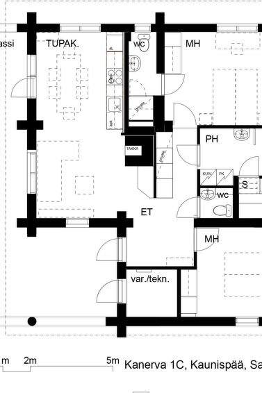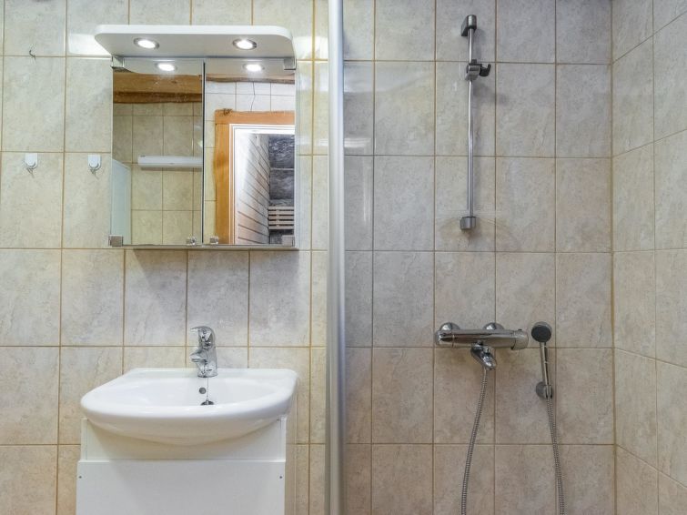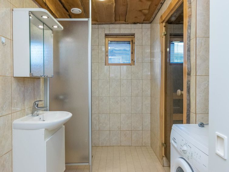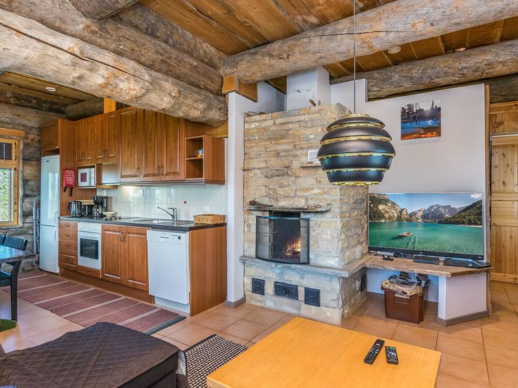The sleeping spaces are versatile: both bedrooms have two single beds that can be used together or separately. There is also an en-suite toilet in one of the bedrooms. The sofa bed in the kitchen-living room offers additional beds if needed. After an active day, you can relax in the sauna, and rest on the corner sofa in the living room, watching the fireplace.