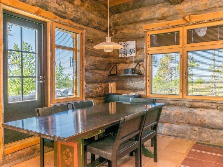 The cabin has a spacious kitchen-living room and a terrace with beautiful views to the south. You can admire the northern sky from the dormer window and the windows of the second bedroom.