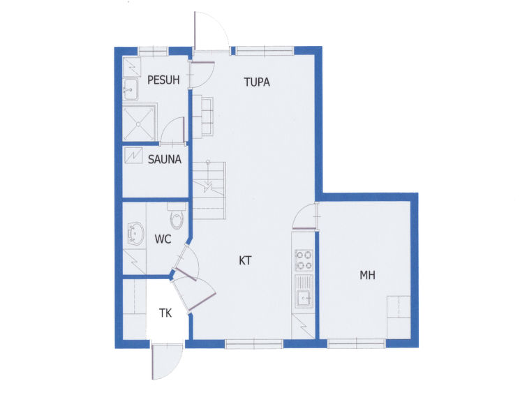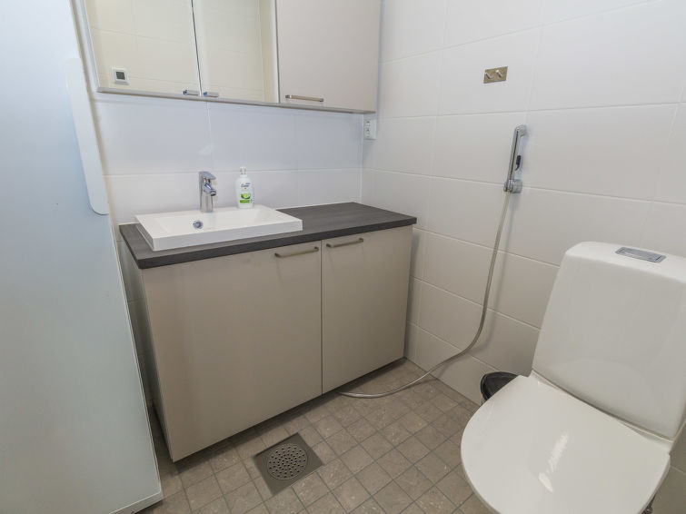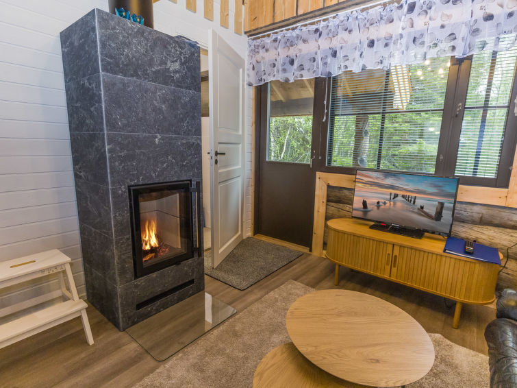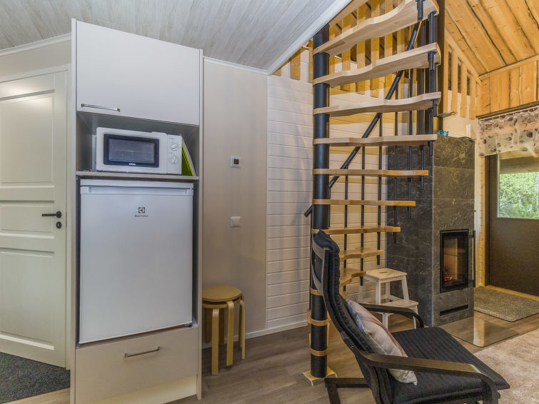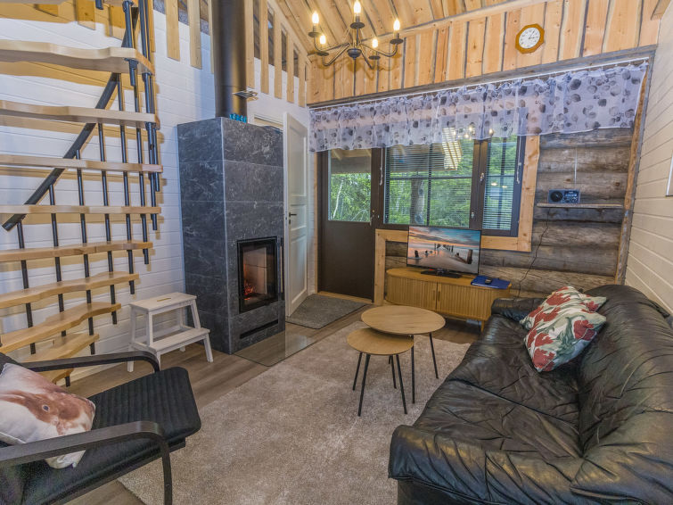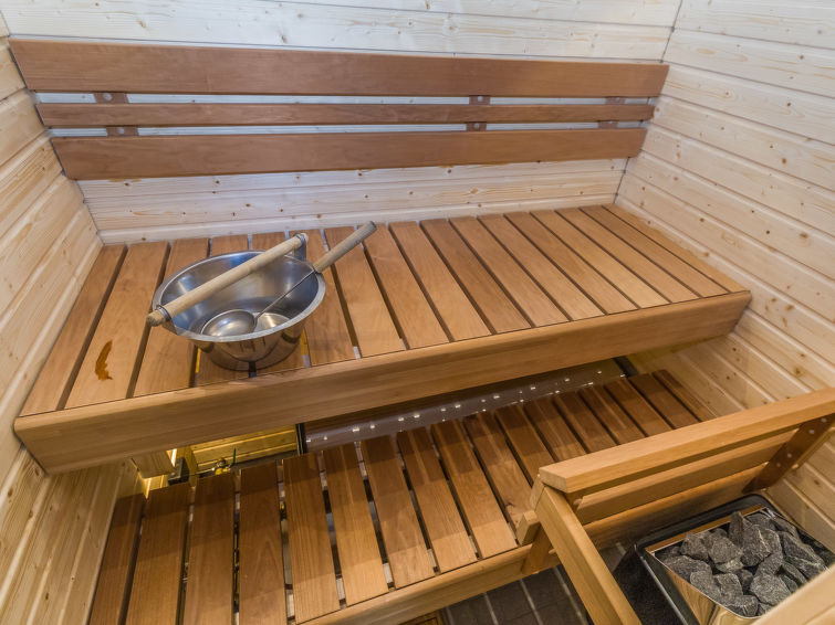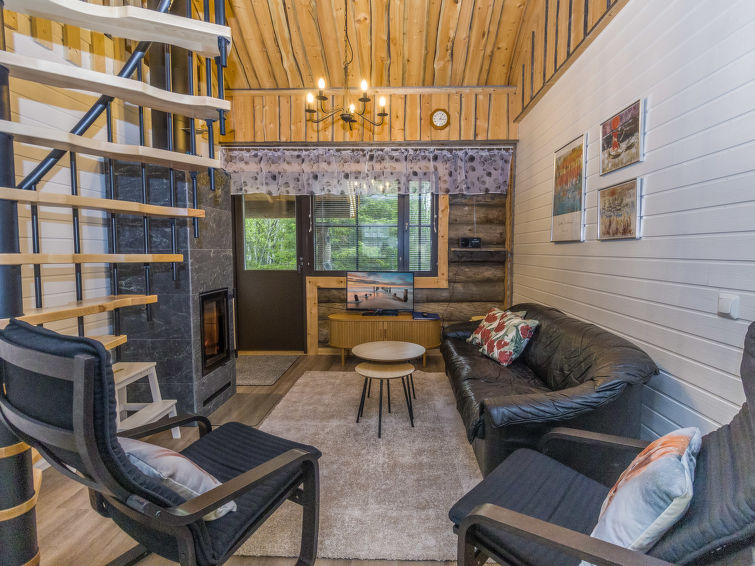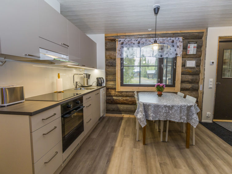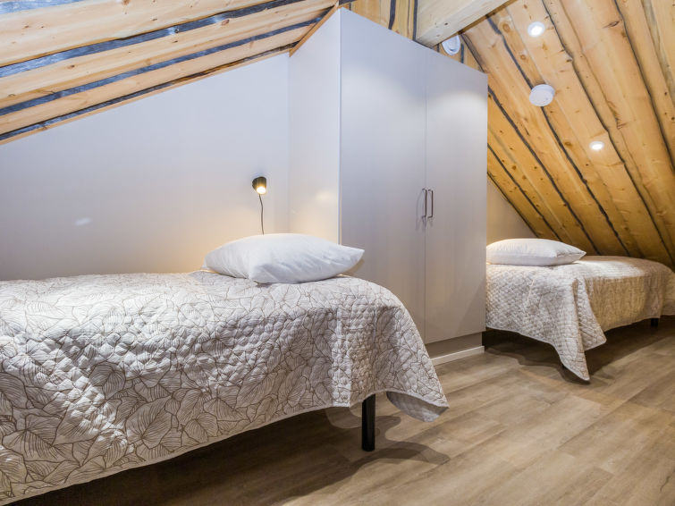 Silverlog apartment, built in 2002. Kitchen-living room, bedroom with 2 beds, upstairs bedroom with 2 beds, loft with two beds, steep staircase to loft. Sauna (electric stove), bathroom and toilet. Small covered terrace. Ski maintenance room and grill hut in shared use. Apartment Kantapää D2 is located within walking distance from Luosto services, activities and restaurants 300-500 m away. Amethyst spa 300 m, amethyst mine 5 km. To the border of Pyhä-Luosto National Park 2.6 km.
