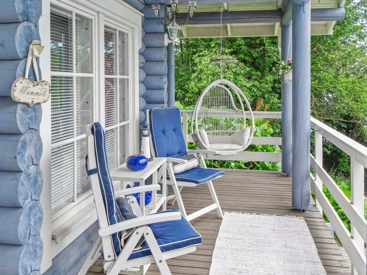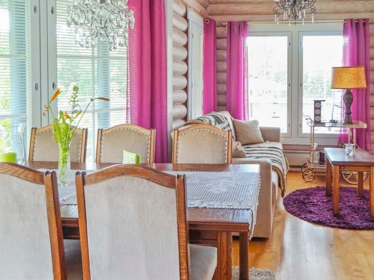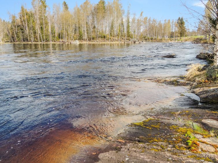 Available for max 3 adults. Small pets allowed. A cosy log cottage situated by the River Ylikylä in Nurmes. The beach is rocky and the bottom deepens gently. Near by is a rapid Käpälyskoski which flows considerable hard in the spring. There is a big terrace and stairs to the beach. A gass grill and a place for a campfire. An air source heat pump heats up and cools down the indoor air. The cottage is decorated charmigly. The owner lives 50 metres away and their vegatable garden is within 20 metres. The owner have lambs in the field in summer. Cottage is not suitable for 4 adults, because sofa bed is only widht 110 cm when extended.