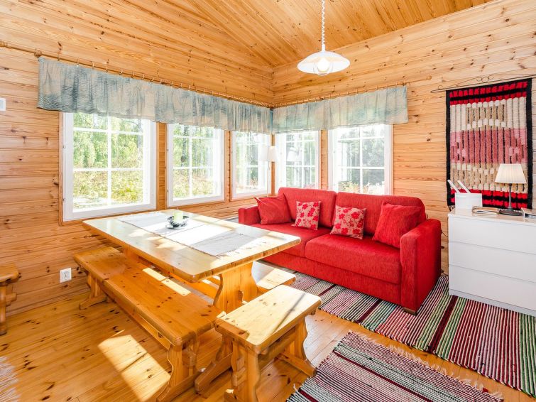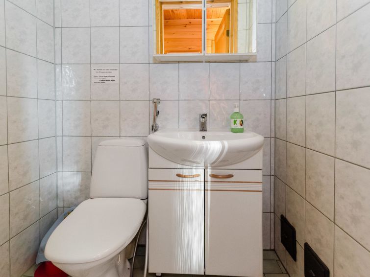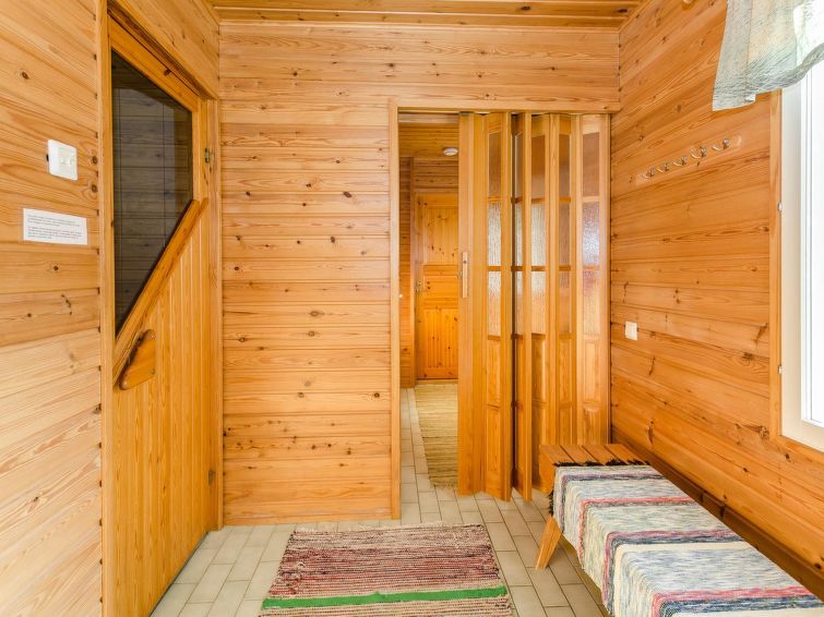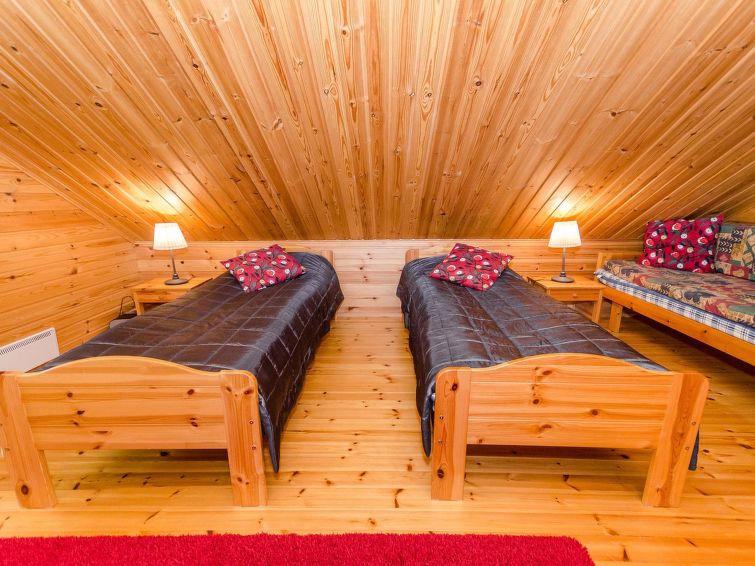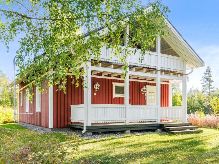 75 km north of Joensuu, artificial pond 30 m. Wooden cottage 1997, kitchen-living room with convertible sofa, bedroom with 2 bed, upstairs bedroom with 4 beds, dressing room, washroom, sauna (both elect. and wooden heated stove), terrace and balcony.
