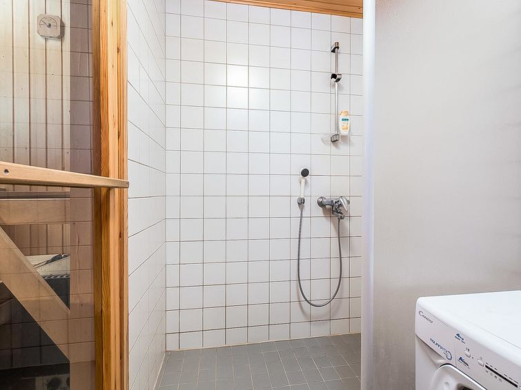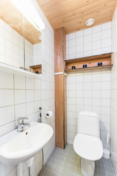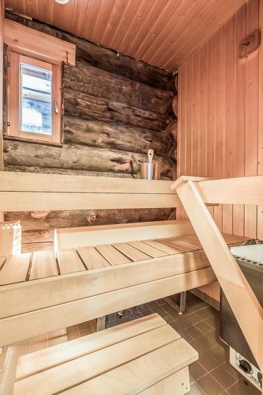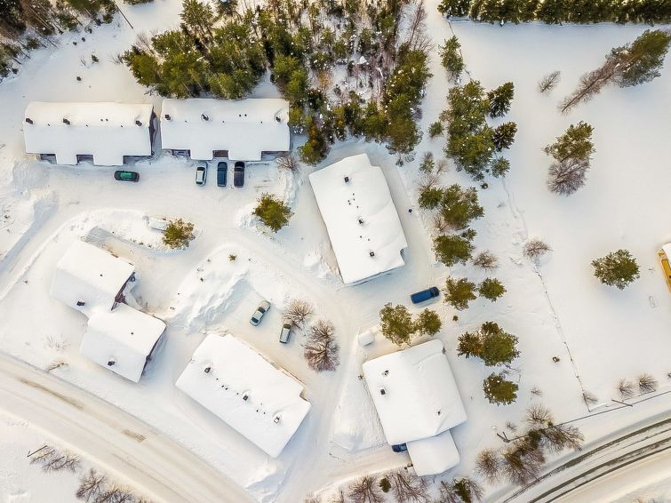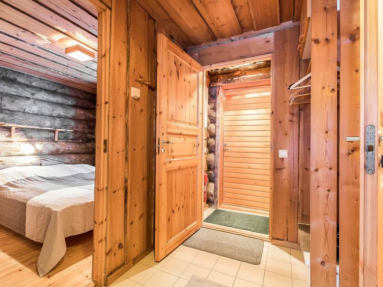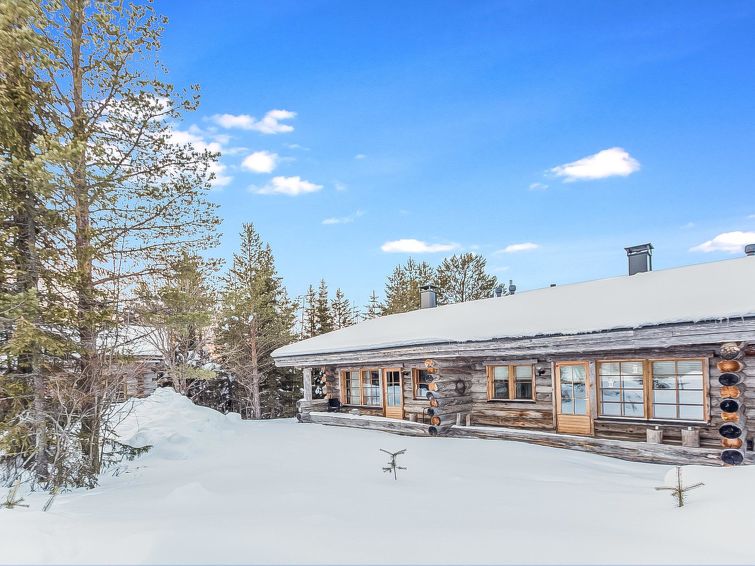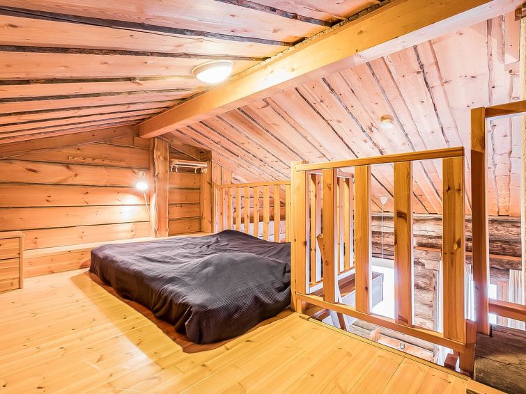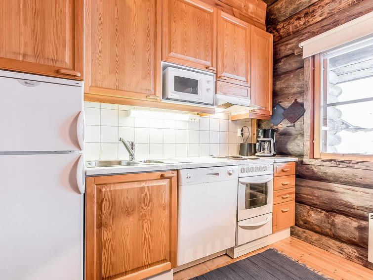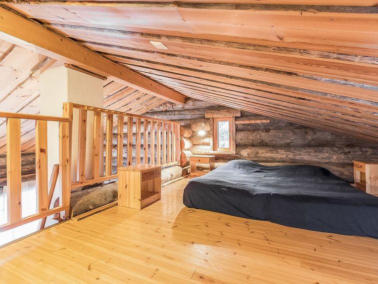 24km north of Kuusamo, Ruka 2km. Apartment at the end of log-built row house, built in 2002, bedroom: 2 beds, loft (steep stairs): 4 spring mattresses, combined kitchen/living room, electric sauna. Area 45 m² + loft with sloping ceilings and low room height, floor area 20 m². Log-built row house situated near by the lake Talvijärvi. Other cottages in the area.