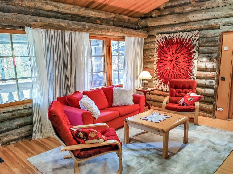 Pets allowed at extra fee, 30e/reservation. Log apartment situated near Hotel Royal Ruka. Other cottages in the area. Nearest ski lifts Masto I and Masto II (Eastern Ruka).