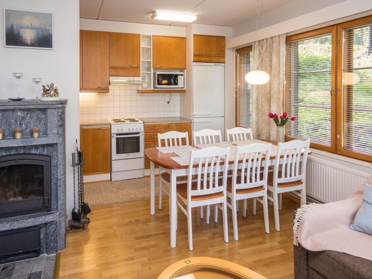 Double bed in bedroom and spreadable sofa bed for two in living room. Living room/kitchen, electric sauna.