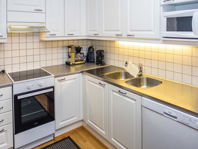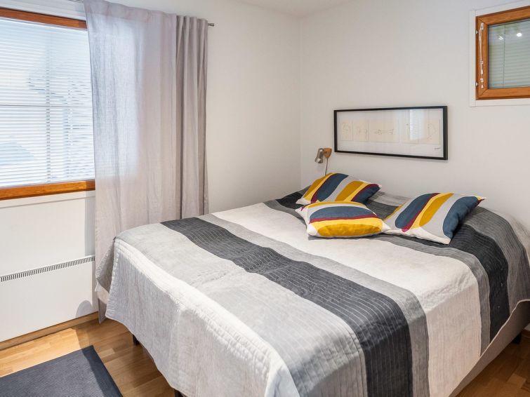 29 km north of Kuusamo, Ruka village (Western Ruka) 150m. Holiday apartment, built in 2002, combined kitchen/living room, bedroom (downstairs): double bed 160 cm, bedroom (upstairs, no door, but child safety gate):2 separate beds 80 cm, living room: sofa (extrabed for 2), electric sauna.