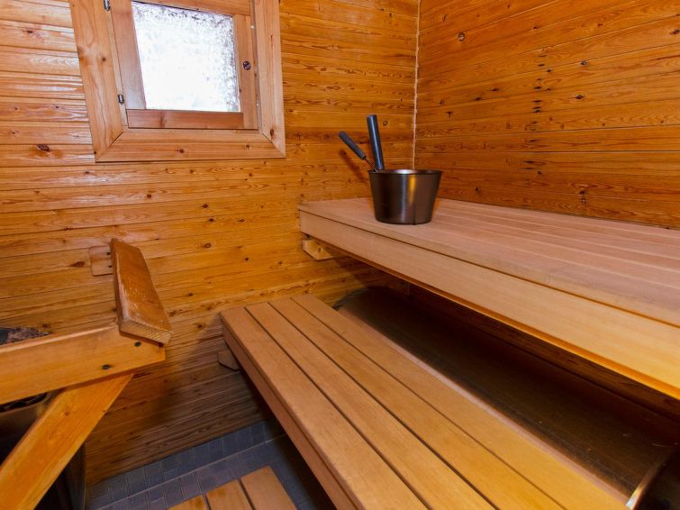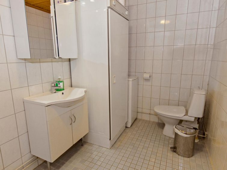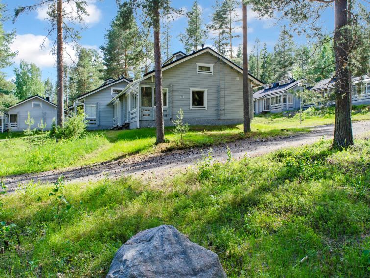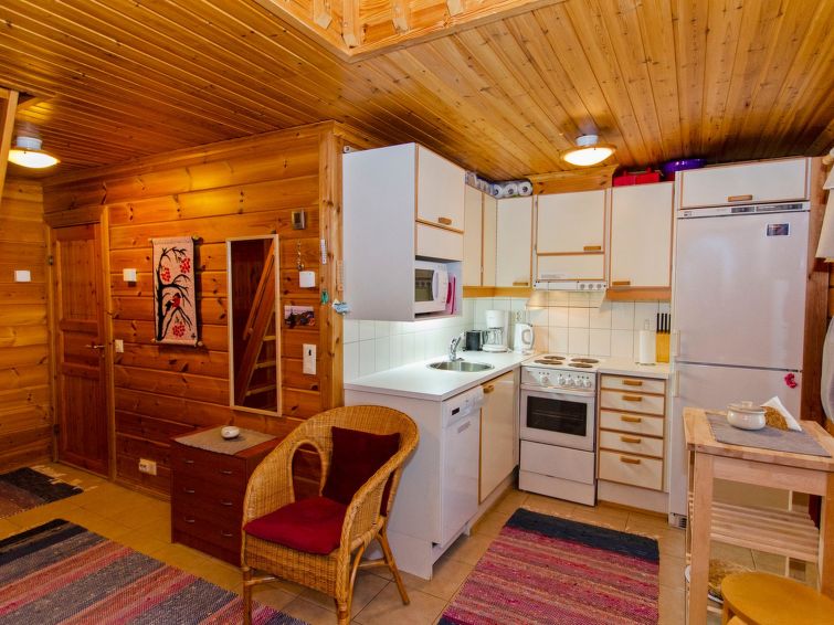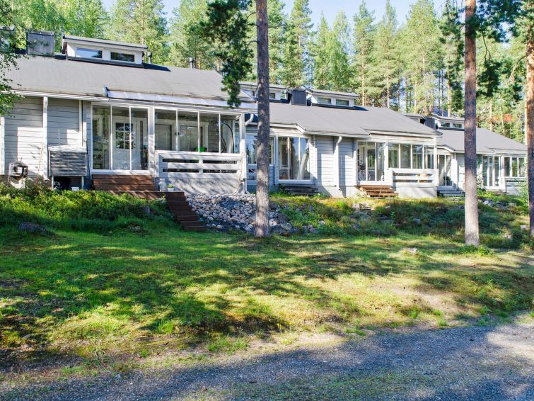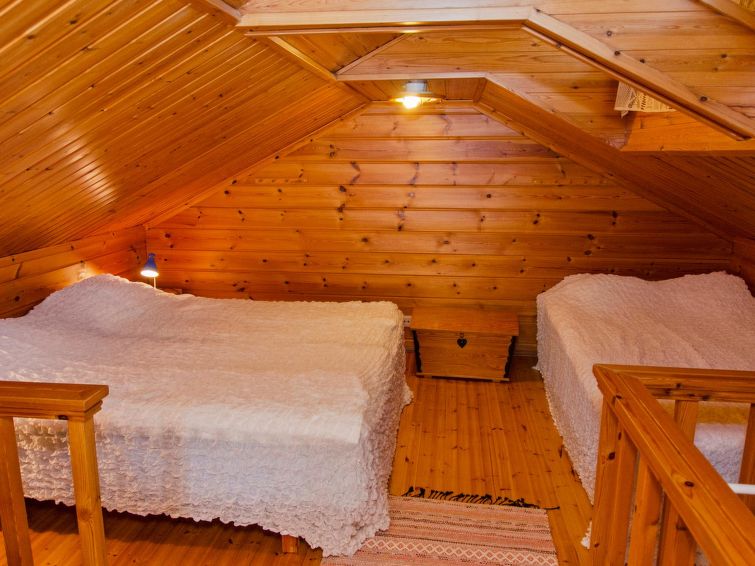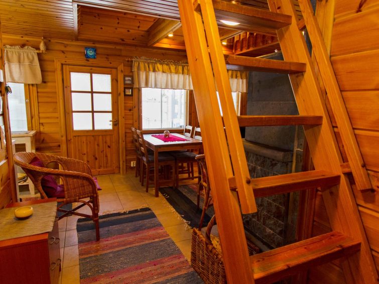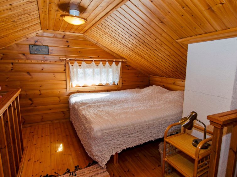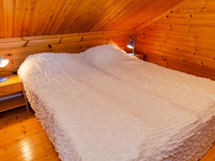 77 north of Joensuu, Lake Pielinen 70 m (871,2 km2) common beach with shallow rocky bottom, separate spot sanded for swimming. Log row house flat 1990, kitchen-living room, bedroom with double bed, sleeping gallery with double bed (120 cm wide) and four beds, washroom, sauna (elec. stove) and terrace. Cozy row house apartment by Lake Pielinen in Loma-Koli cottage area. Good possibilities for down hill and cross-country skiing; Ukko-Koli slopes 9 km. There is a satellite antenna with hundrets of TV channels, also 12 Russian channels. Reservations start at 16.00 and end at 12.00 (also in weekend bookings). Final cleaning cost will be added to the price.