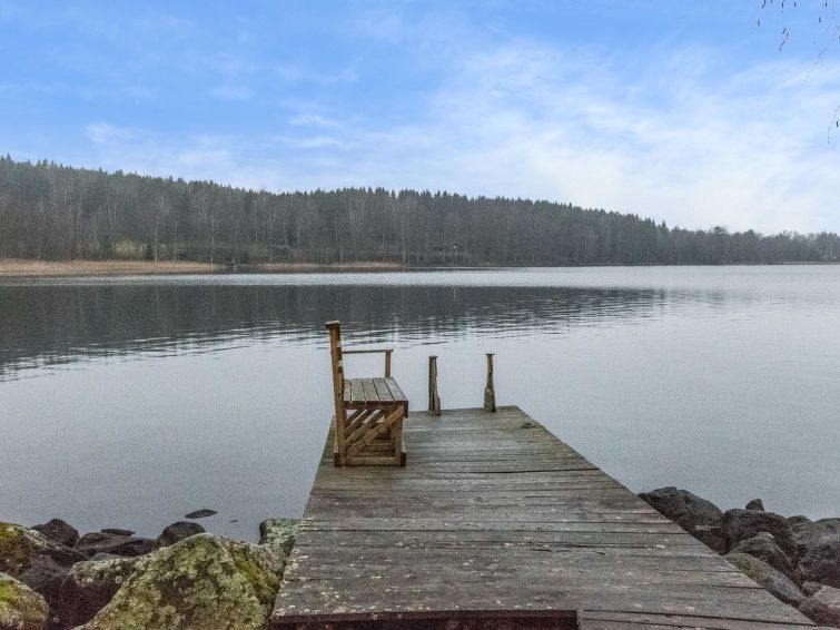 37 km to the north from Hämeenlinna, lake Iso-Roine 15 m (length 8 km, width 2 km), rocky beach, not suitable for small children, pier. A natural trail leads to the pier at the tip of the cape. You can swim from the pier (there is a swimming ladder). Due to the rocky bottom, access for swimming from the beach is a bit challenging. 100 m away in the marina, there is own rowing boat and 200 m away, shallow child-friendly sand beach shared with other cabins in the area. The rowing boat is stored on the marina due to the rockiness of the beach.