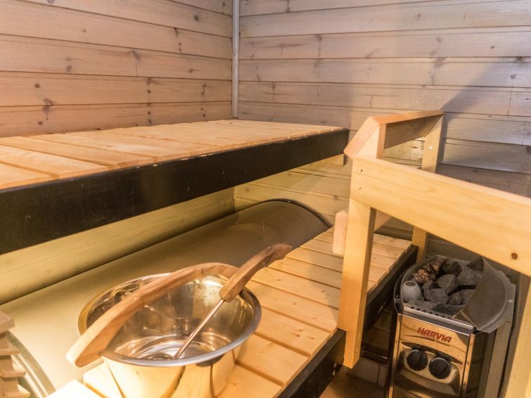 Log cabin, built in 1989, bedroom 1: double bed, bedroom 2: 2 bunk beds, living room/kitchen, electric sauna. More information: Final cleaning is included in the price.