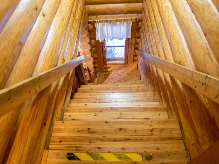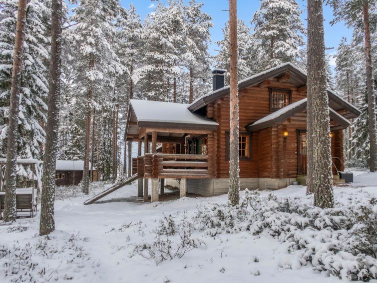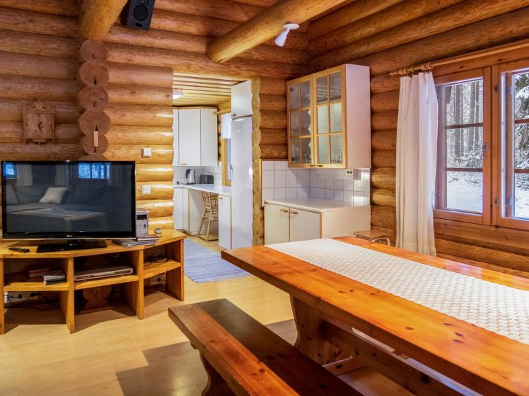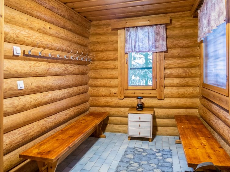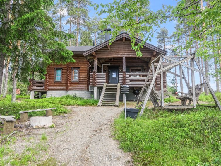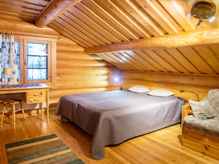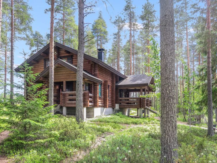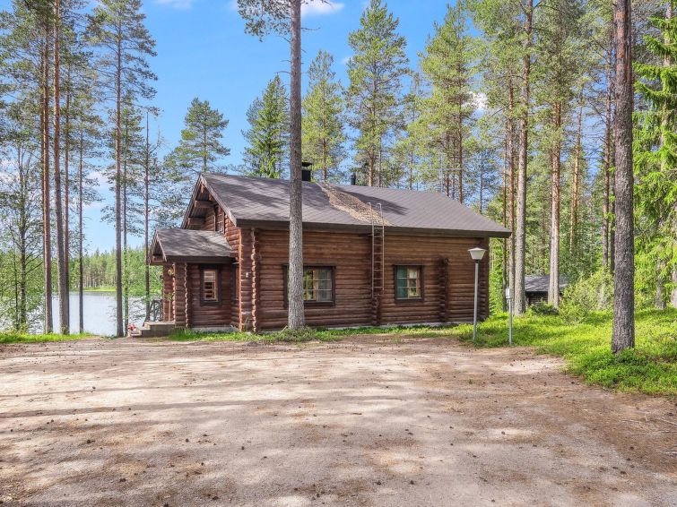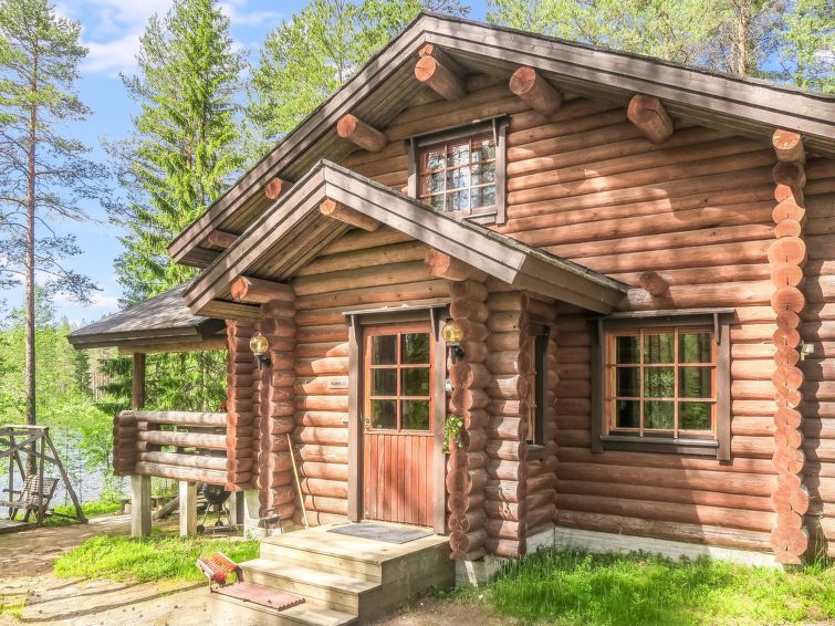 This log cottage by the small Lake Ylä-Valkeinen in Välikoski area in Sotkamo was completed in 1993. Floor area 120 m². Combined living room & kitchen, with sofa bed for 1-2 person, loft with two bedrooms, both with 2 beds + sofa bed for 1-2 persons. Sauna (electric heating), washroom, dressing rom, toilet. Porch.
