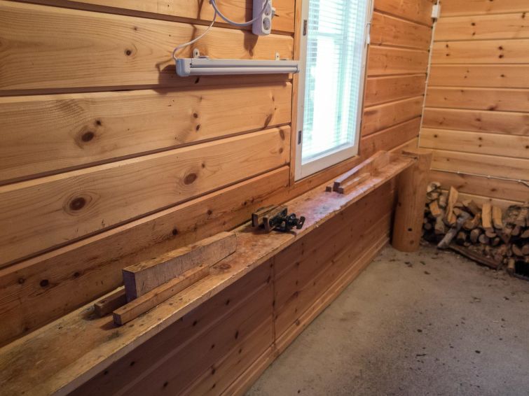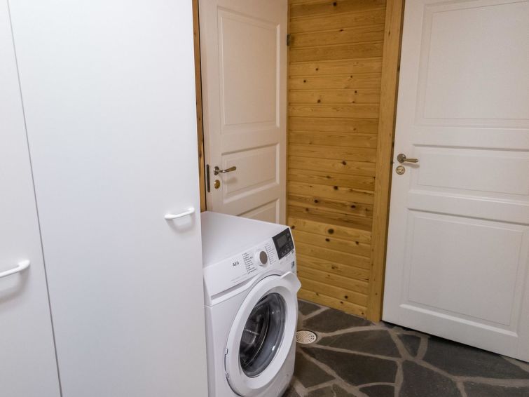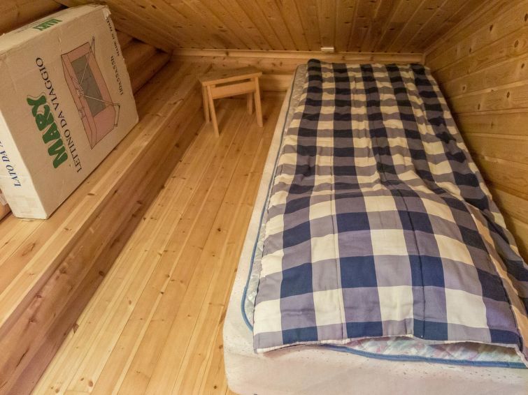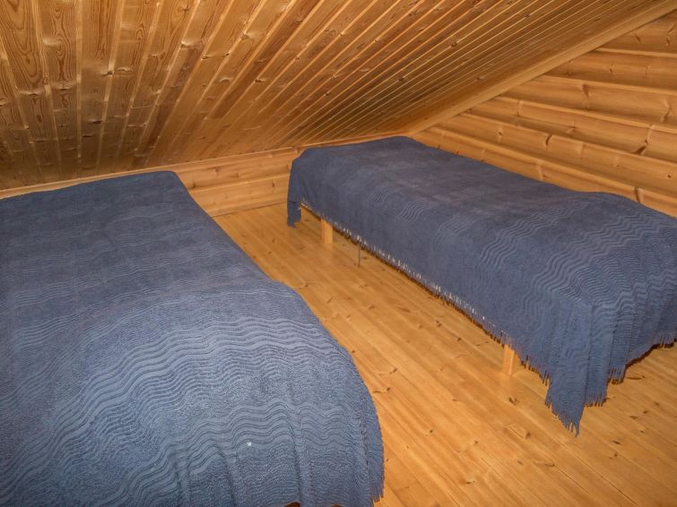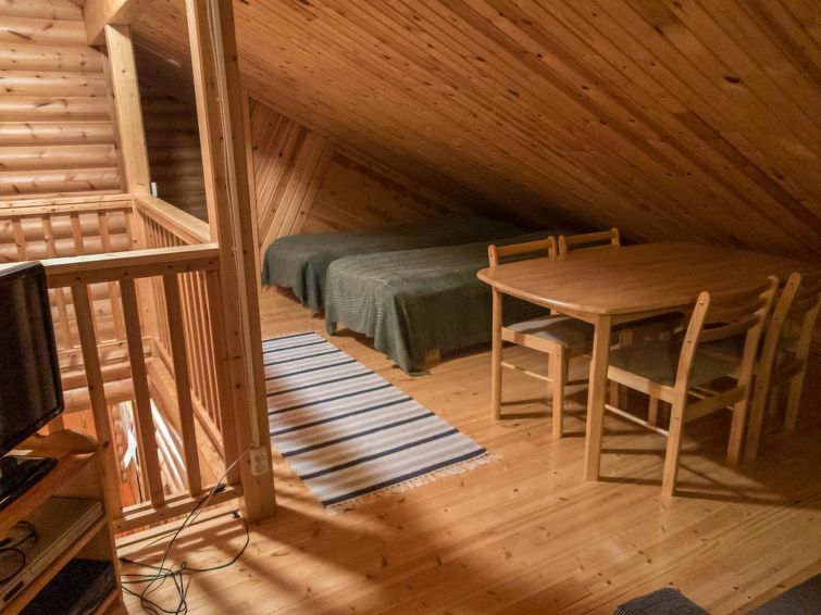 Log cottage built in 1997. Combined kitchen-livingroom, 3 bedrooms with 2 beds each downstairs, 3 sleeping alcoves (curtains at the doorways) each with 2 beds upstairs (sloping ceilings), electric sauna, shower, 2 toilets, utility room and drying room with drying cabinet for clothes. Ski maintenance room. Big terrace. Baby cot, high chair and sled. 3 kicking sleds for an adults. Total area 158 m² of which 126 m² downstairs and 32 m² upstairs.