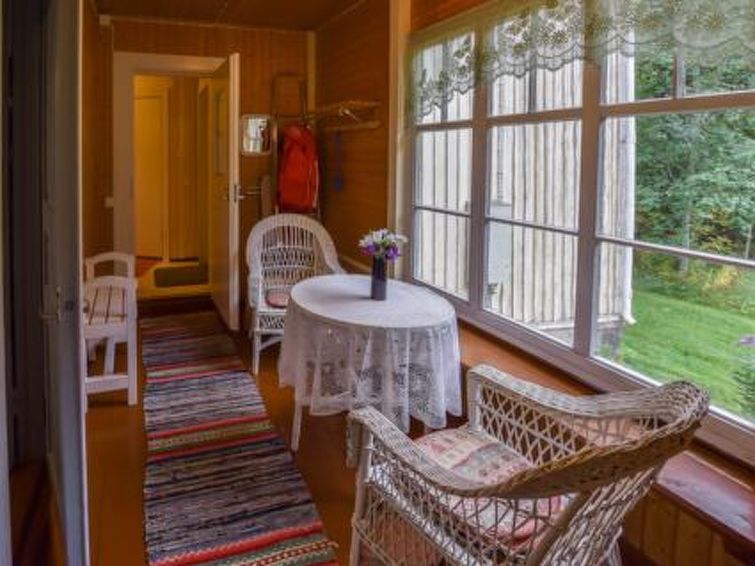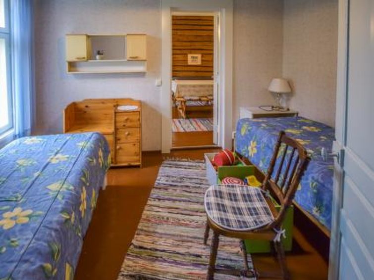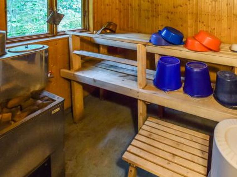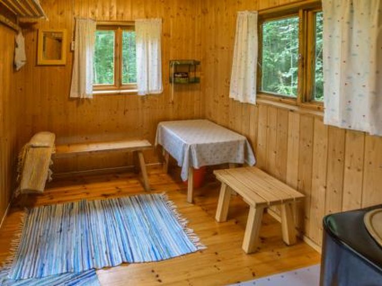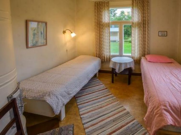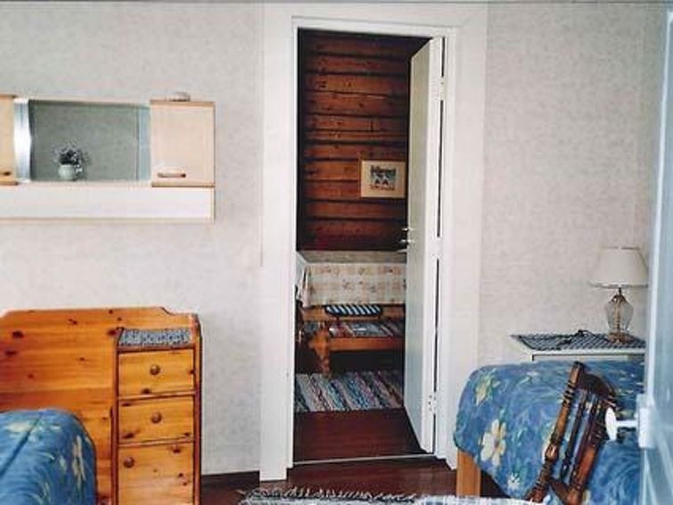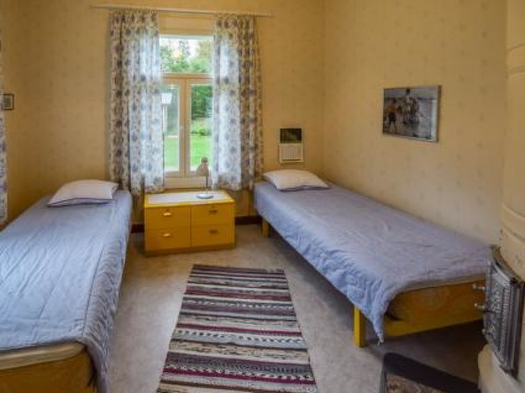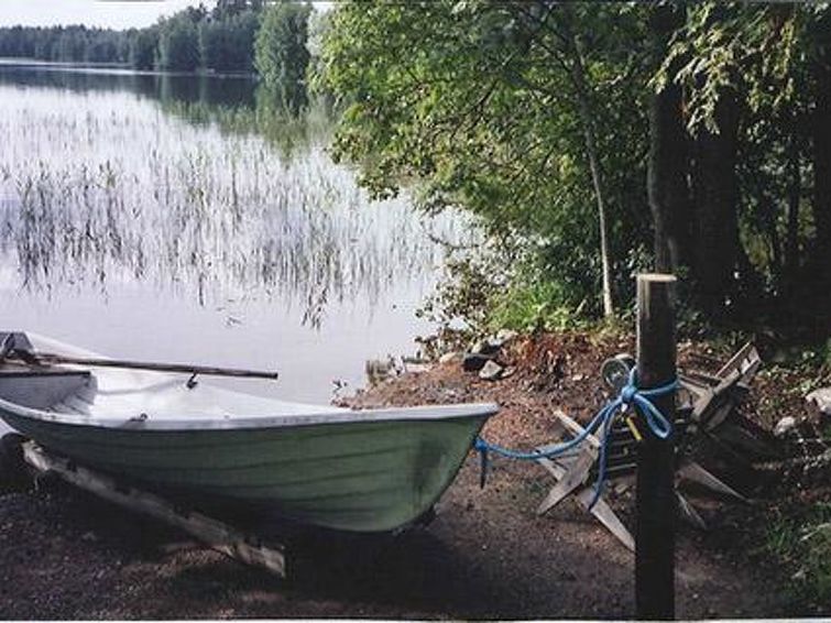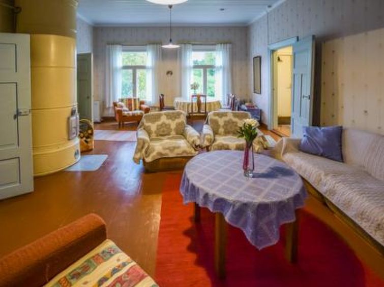 Lahti 60 km, 25 km north of Heinola, lake Uurajärvi 150 m (length 3.5 km, width 1 km), hard, shallow sandy bottom, own boat. Wooden house, built in 1900, renovated in 2004, kitchen, living room, bedroom with 2 beds, bedroom with 2 beds, bedroom with 2 beds, bedroom with 2 beds, living room/kitchen=dining room, washing room, WC, veranda. The attic is not in use. Separate sauna, wood-burning stove, hot water pot in the dressing room for heating washing water, porch. Woodshed/storage building. Former big village shop, which is now a holiday house. The house has sheet metal covered stoves 4 pcs. Bedrooms are bright and spacious. Lawn garden and playground, surrounded by fields. The access to the lake goes along the village road (150 m), small pier by shore. Lake Uurajärvi is a clear water lake with a lot of nesting birds. Four bicycles (2 for adults and 2 for children) for free use.