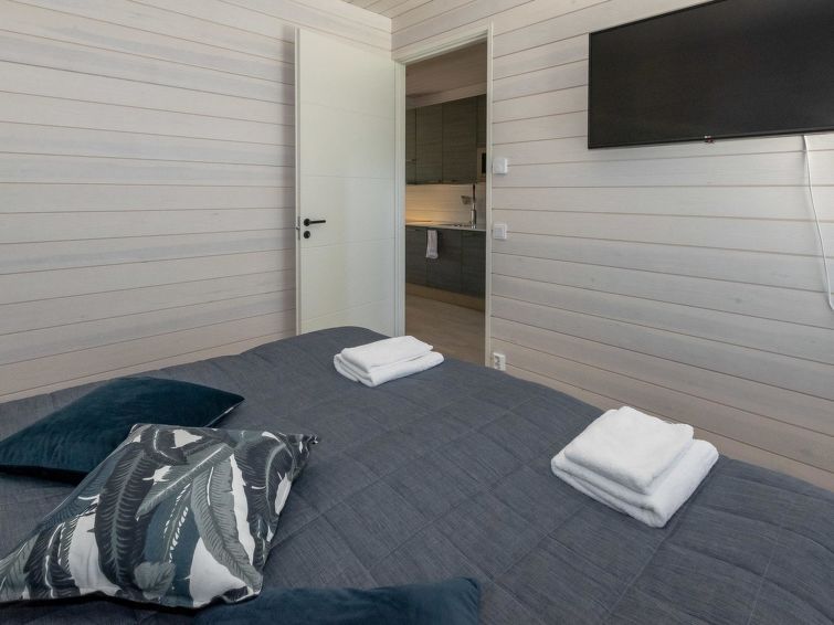 Magnificent 45 m² holiday apartment, built in May 2019. Living room with sofa bed (140 cm wide) for two, living room/kitchen, bedroom with two 90 cm wide beds, electric sauna, shower, toilet in the washroom, air source heat pump (for cooling), high-speed wired internet connection.