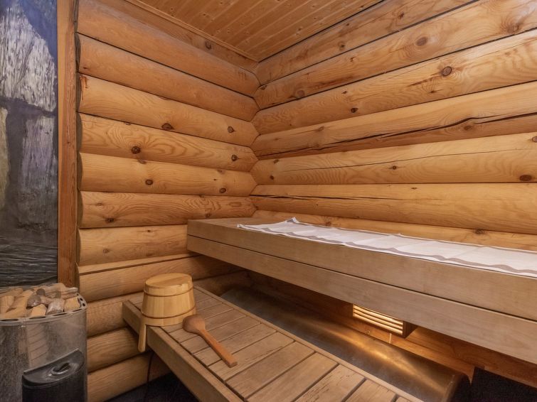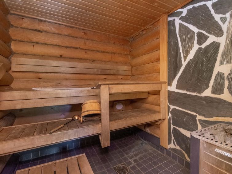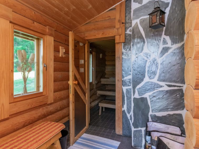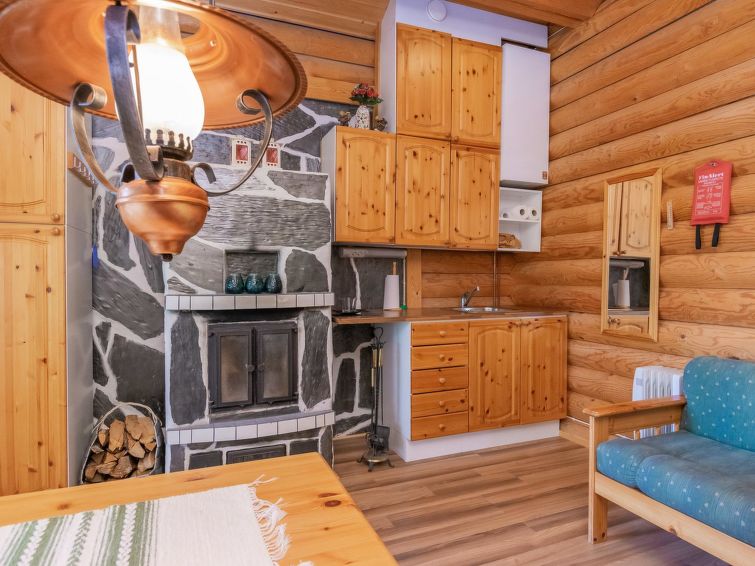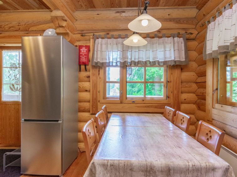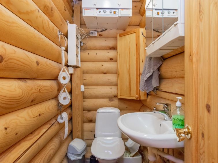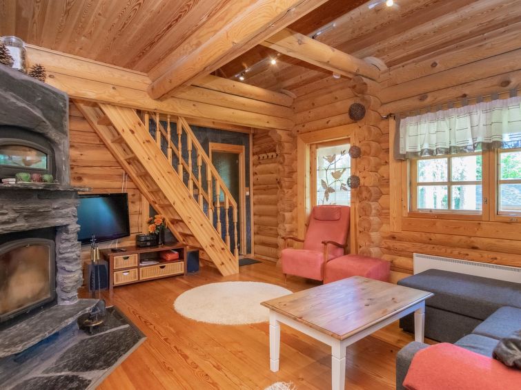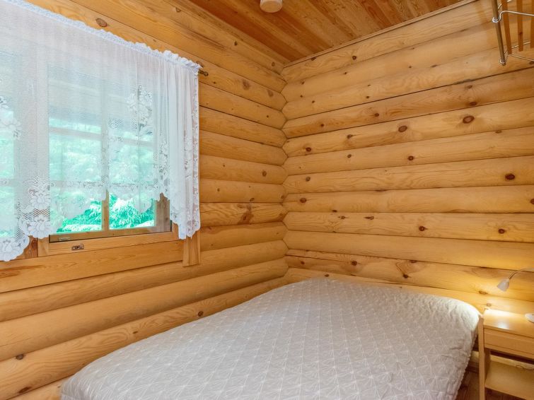 Log cottage 2004, living room/kitchen with sofa bed, bedroom 1 bed. Upstairs 2 beds and extendible convertible sofa/bed, sauna (electric stove), washroom, WC, terrace, balcony. Air source heat pump.