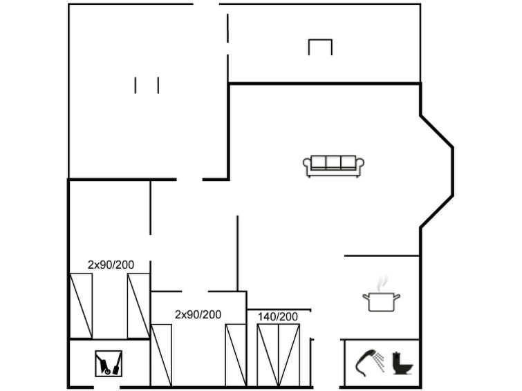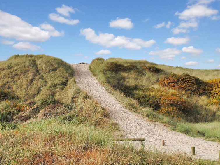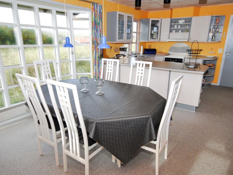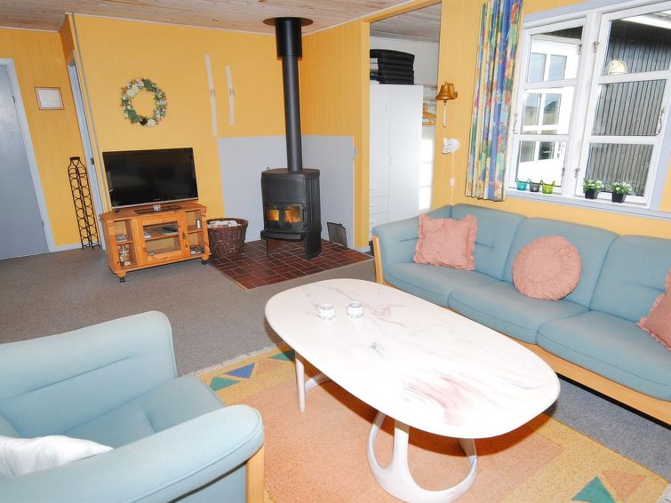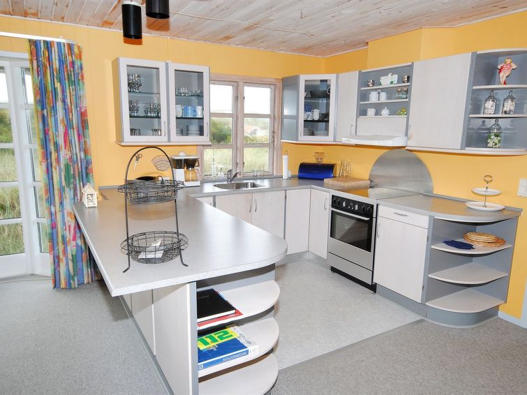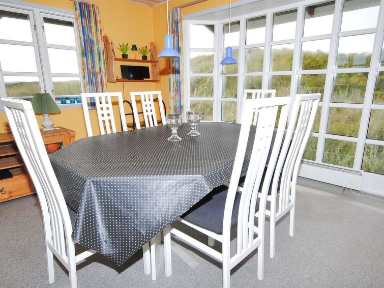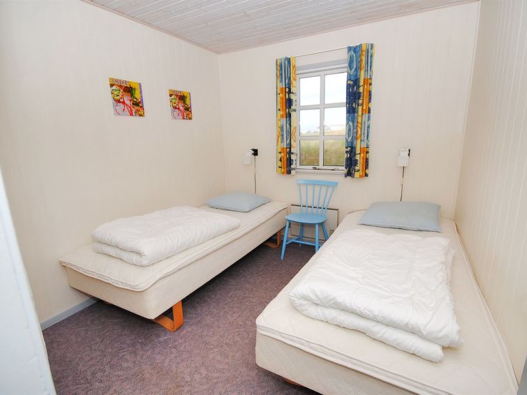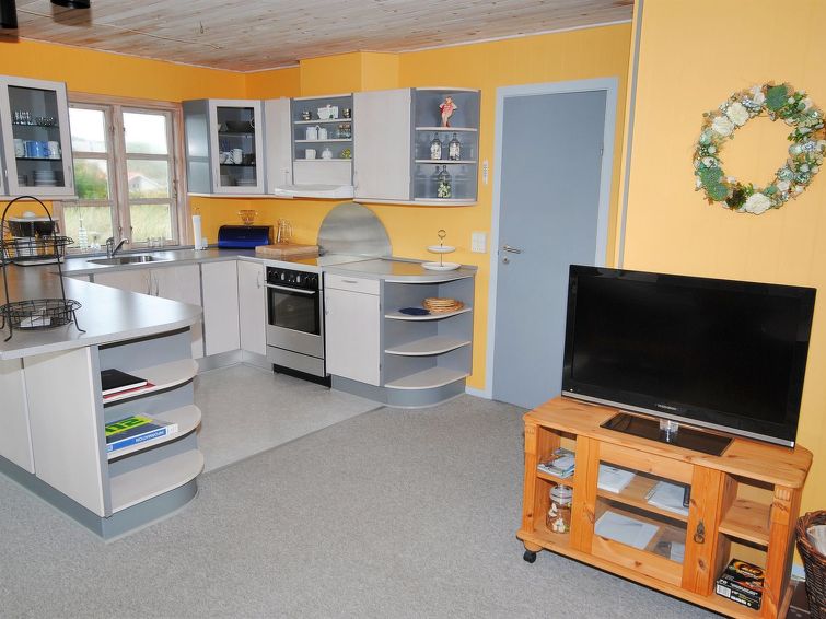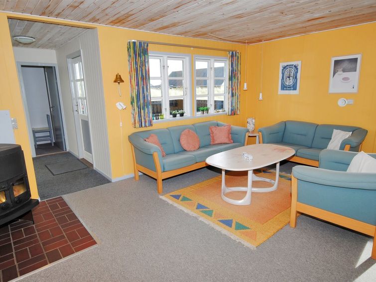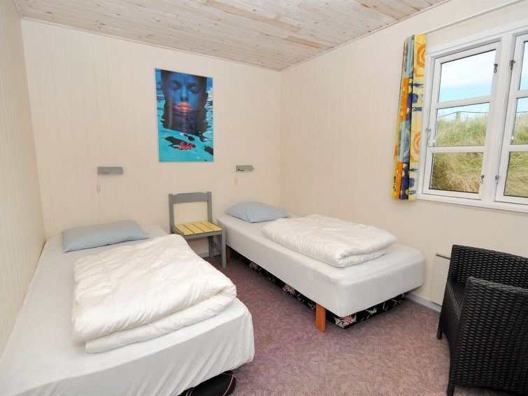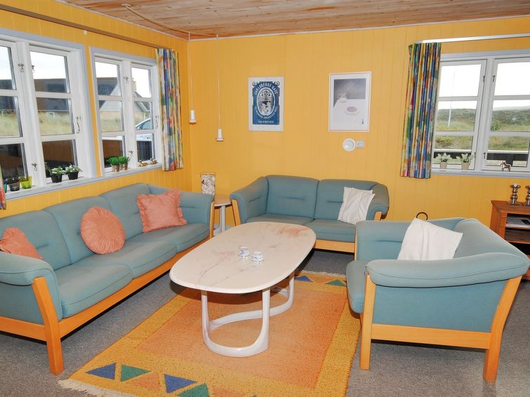 "Katha" - from the sea in Western Jutland", 3 rom hus 83 m2. Passer for 6 voksne. Stue med, TV. 1 rom med 2 senger. 1 rom med, 1 dobbeltseng. 1 rom med 2 senger. Kjøkken (4 kokeplater, stekeovn, mikrobølgeovn, frys). Dusj/WC. Terrasse 12 m2, dekt. Vennligst merk: røykfri bolig.