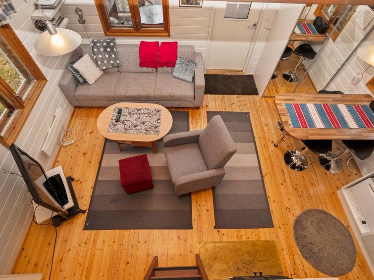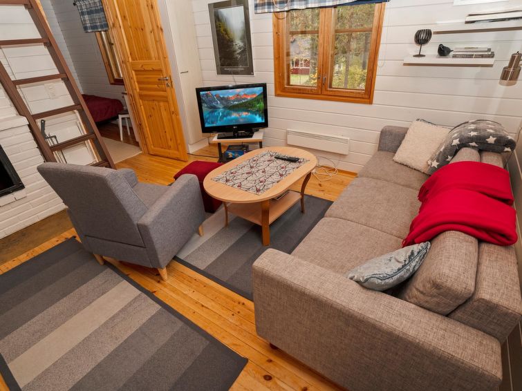 Cottage with living room (convertible sofa bed for 1-2 persons), fireplace, kitchen, bedroom with 140 cm wide bed, loft (steep stairs) with 3 mattresses, wood heated sauna, renovated bathroom, terrace. Electric barbeque. Downstairs 42 m² + loft 12 m². Cottage located in a peaceful area of lake Ala-Kitka in the area of Kaukosaari (4 cottages in the area). 300 m away there is a bird-watching tower with super views of the lake Kitka and Ruka/Valtavaara. Distance from the fell Valtavaara is approx. 8 km. Near by cottage Kaukosaaren Ahonlaita is possible to rent, with this cottage possible accommodation for bigger group max 10 persons.