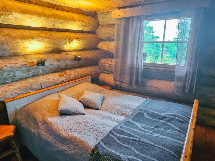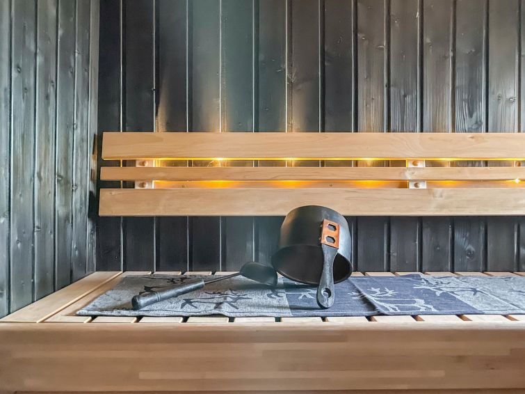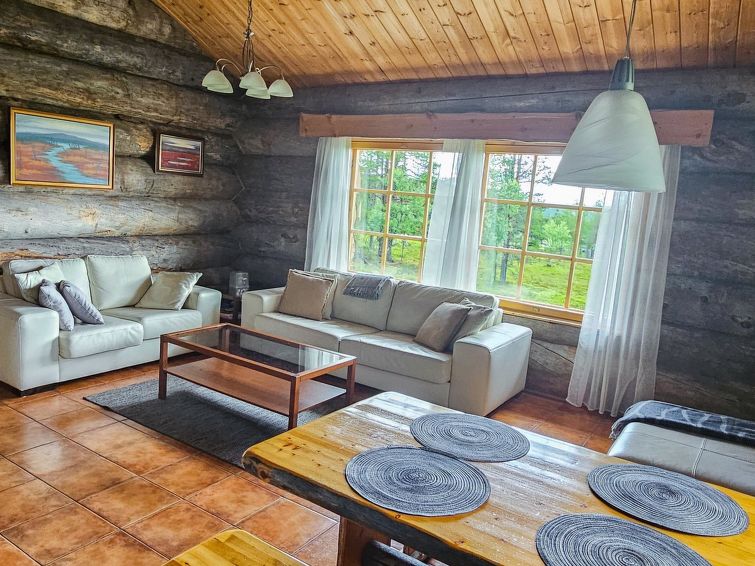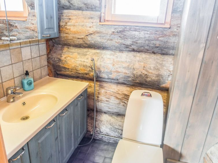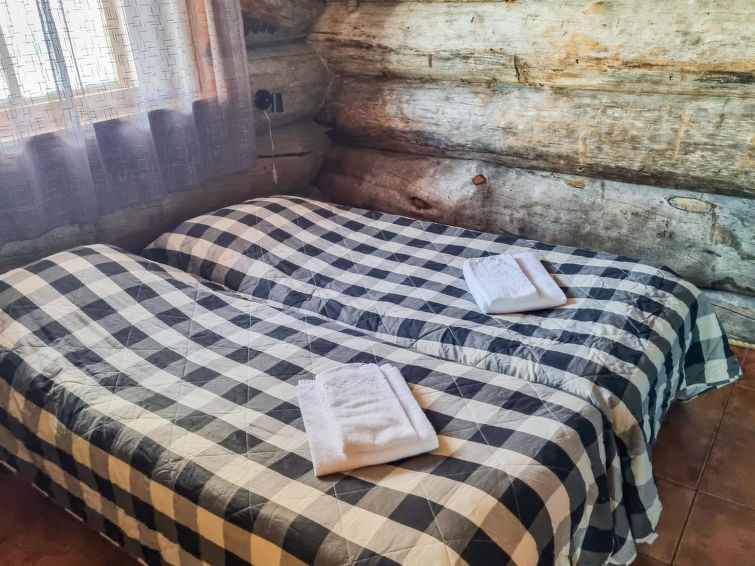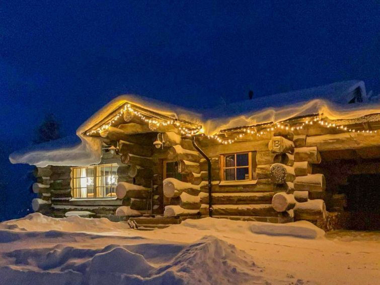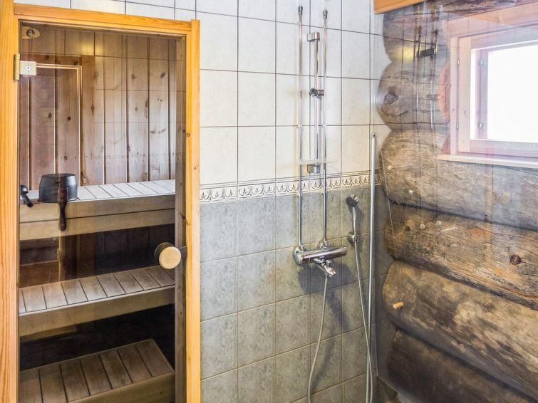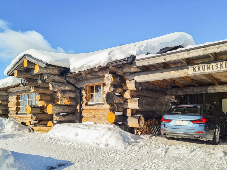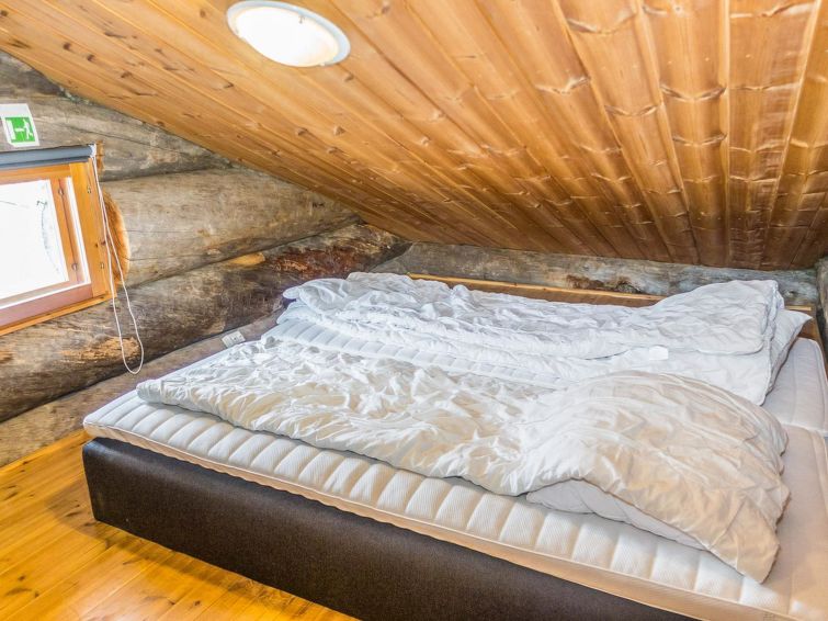 Silver log cabin in Kaunispään Etelärinne II area 2,3 km from the center of Saariselkä. Kitchen-living room, 2 bedrooms, one with a double bed and other with 2 beds, loft (steep stairs) with 2 matteresses, electric sauna, shower room and toilet. In living room is fireplace made of natural stones. Built in 2006. Features include also a large set of cutlery and cookware, coffee cooker, water kettle, toaster, hand blender, mixer, iron and ironing board, hair dryer.