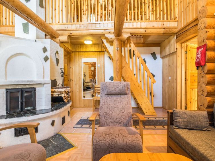 29km north of Kuusamo, Ruka 4.5km. Log cottage, built in 2000, bedroom: double bed, living room: sofa for two, loft (28 m²): 4 spring mattress beds, combined kitchen/living room, electric sauna.