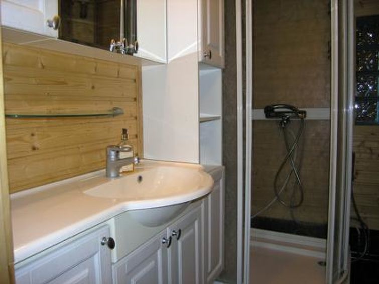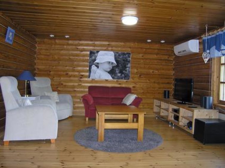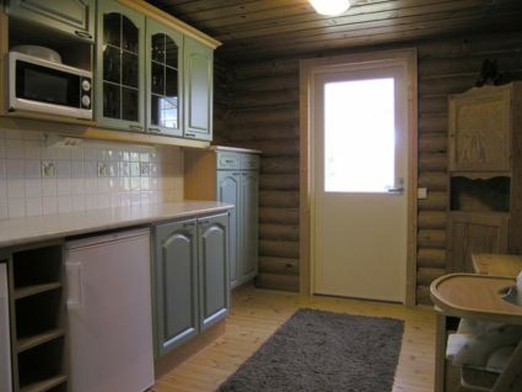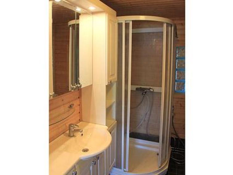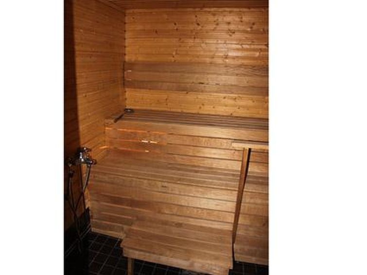 Downstairs vestibule, living room, kitchen, alcove 2 beds, washroom, sauna (wooden heated), terrace.