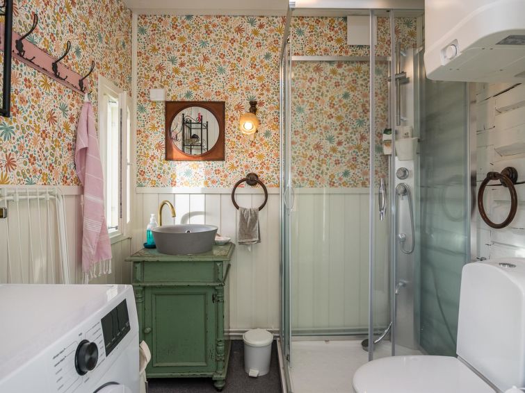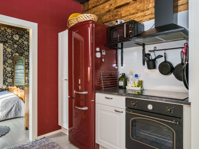 The cottage also has a wood stove and baking oven. Ceramic hob and convection oven. The dishwasher is a small table model.