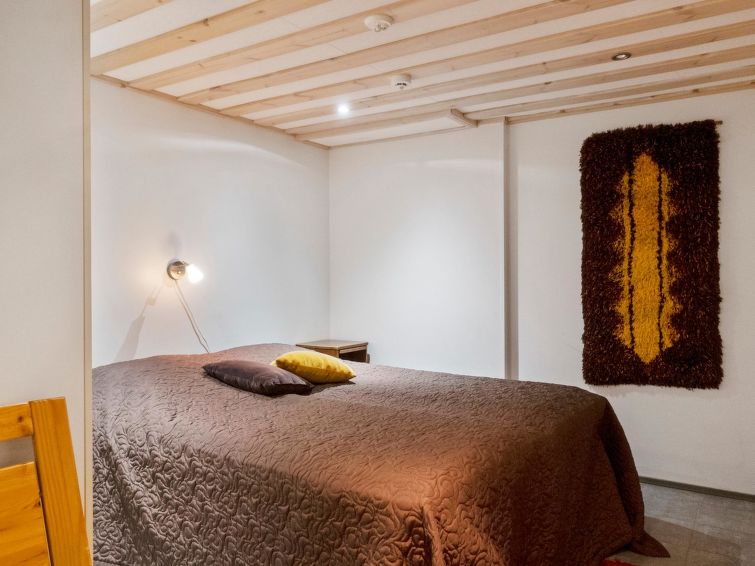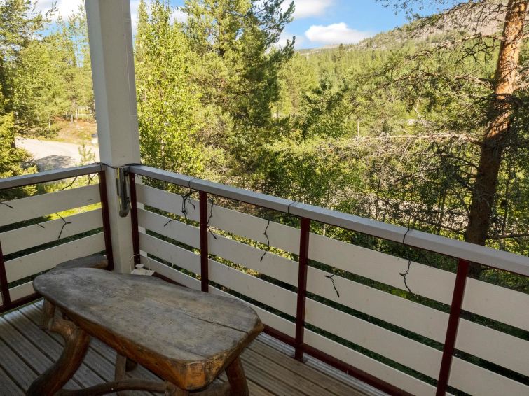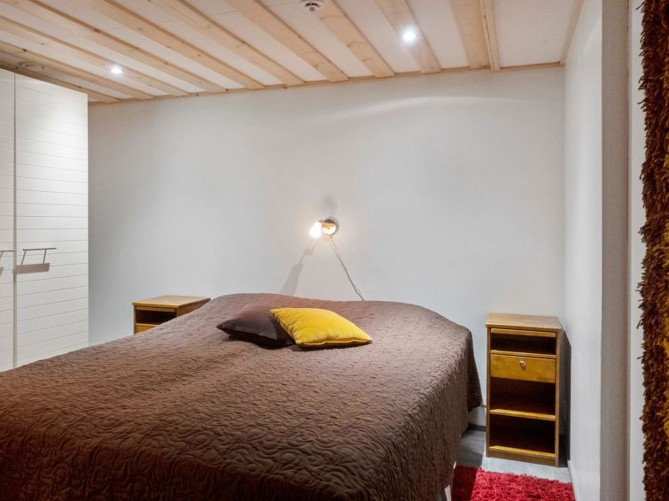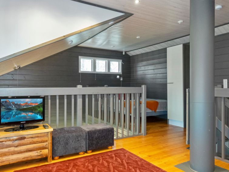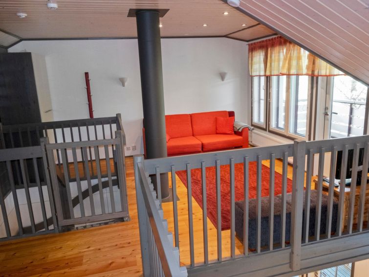 On the mezzanine floor there is living area with double bed (width 140 cm) in its own compartment and spreadable sofa bed. In connection with the loft there is also balcony. On the ground floor of the apartment, garage for snowmobile. This space is suitable for storing equipment and ski maintenance, for example. Lifting door in the garage.