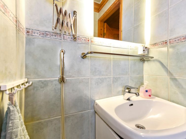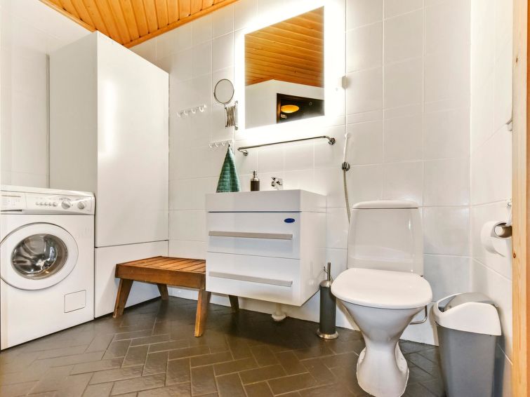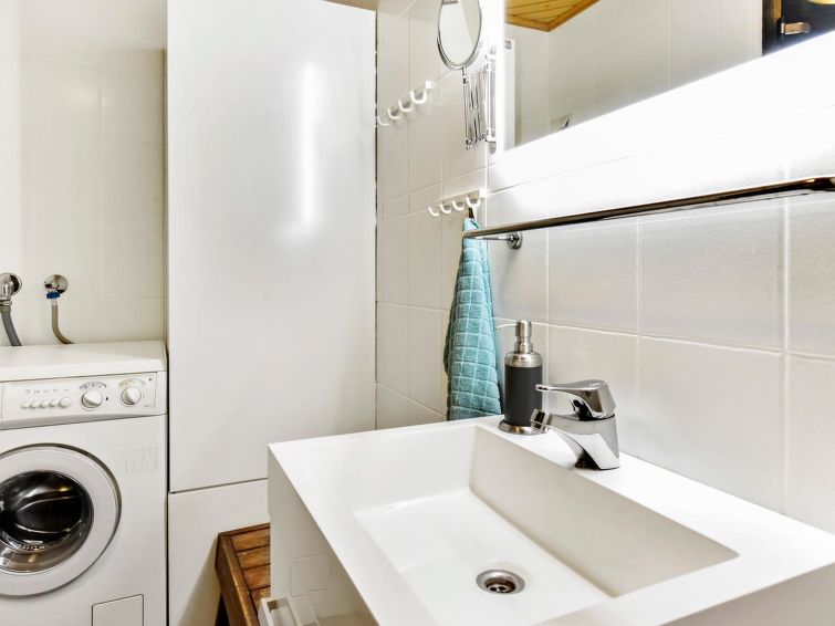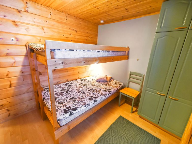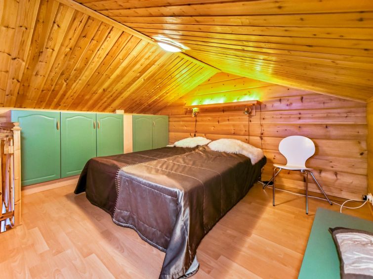Half of the semi-detached cottage (built in 1999) in the east side of Ruka close to the slopes, 2 km to the nearest lake (Vuosselijärvi). Two bedrooms, bedroom 1: double bed, bedroom 2: wide bunk bed. Living room, kitchen, toilet, washroom, sauna, loft with four beds. Two TVs and cable TV. Apartment is near to the slopes, skiing tracks, snow mobile routes. Nearest lift is Masto (about 550 m). Nearest restaurants Ski Bistro and Camp Kitchen & Bar. In summer time for example Valtavaara hiking route about 1,5 km from the apartment.
