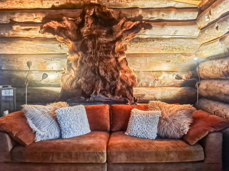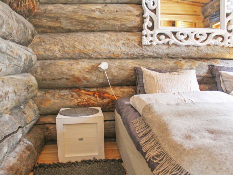 27 km to the north from Kuusamo, Ruka village (West-Ruka) 300 m. Kelo log cabin, built in 2001 in Keloruka area, bedrooms 1-4: double bed, bedroom 2: 2 beds. Each bedroom has own WC and shower. Living room/kitchen, electric sauna. More information: Internet connection = Ruka area’s open WLAN. Bed linen and final cleaning are included in the price.