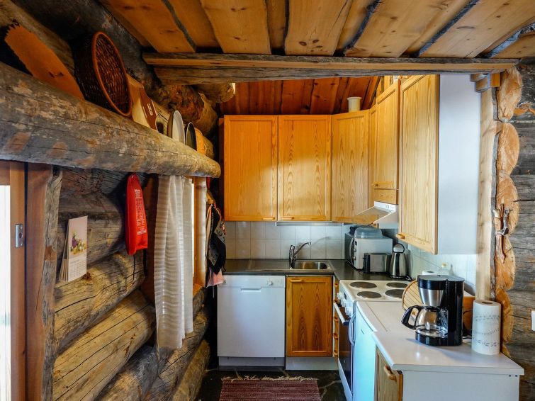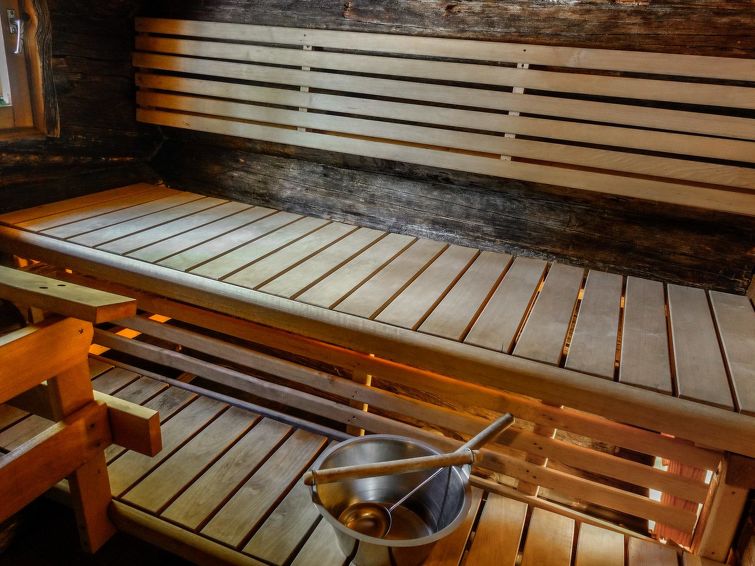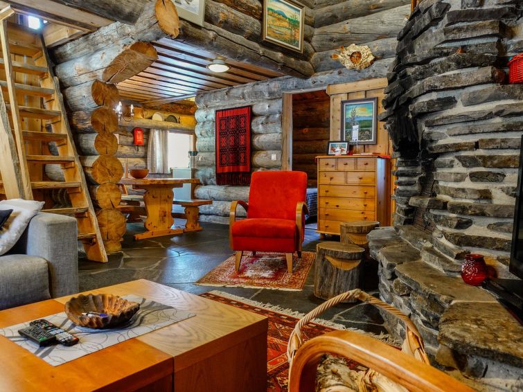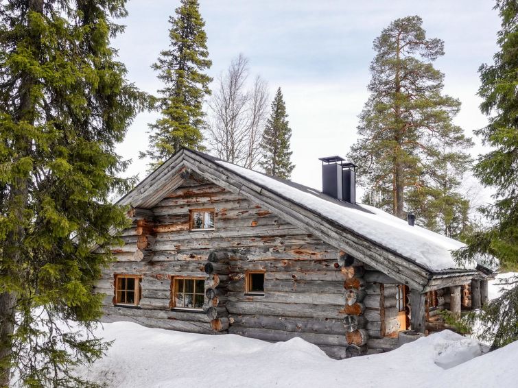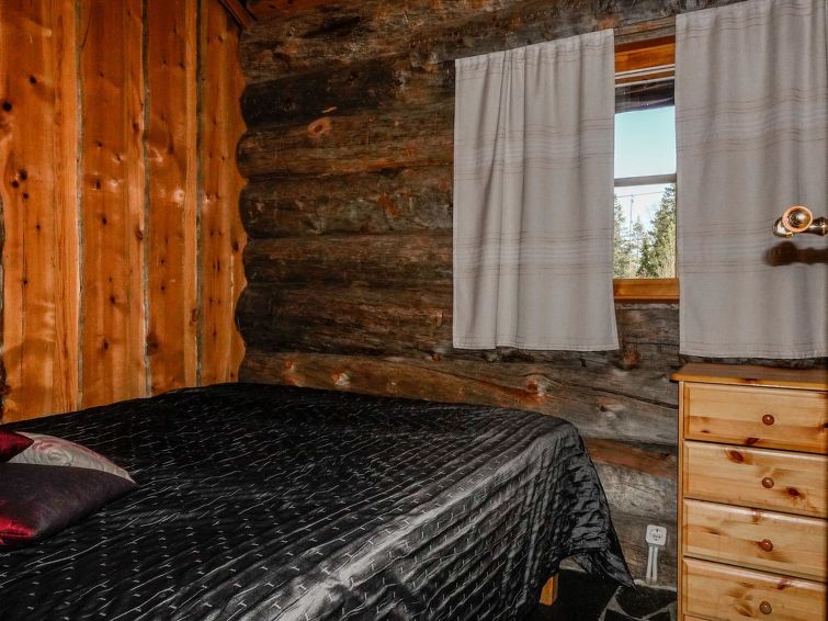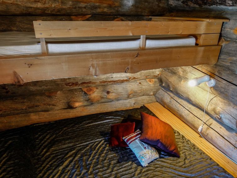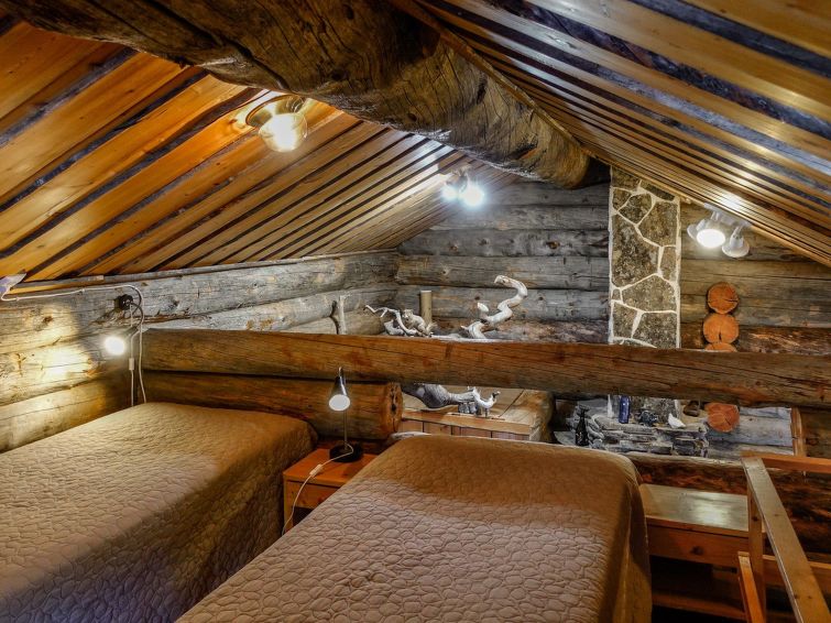Half (apartment) of semi-detached silverlog house unit 1990, large living room, cooking corner, bedroom double bed, bedroom bunk with 140 cm wide lower bed, sleeping loft (steep stairs) 2 beds, sauna (electric stove), washroom, separate WC. Separate storeroom in yard. Homely apartment in log semi-detached house unit close to main Luosto services. Amethyst spa 1.5 km, restaurants 1.3 - 1.7 km, amethyst mine approx. 5 km