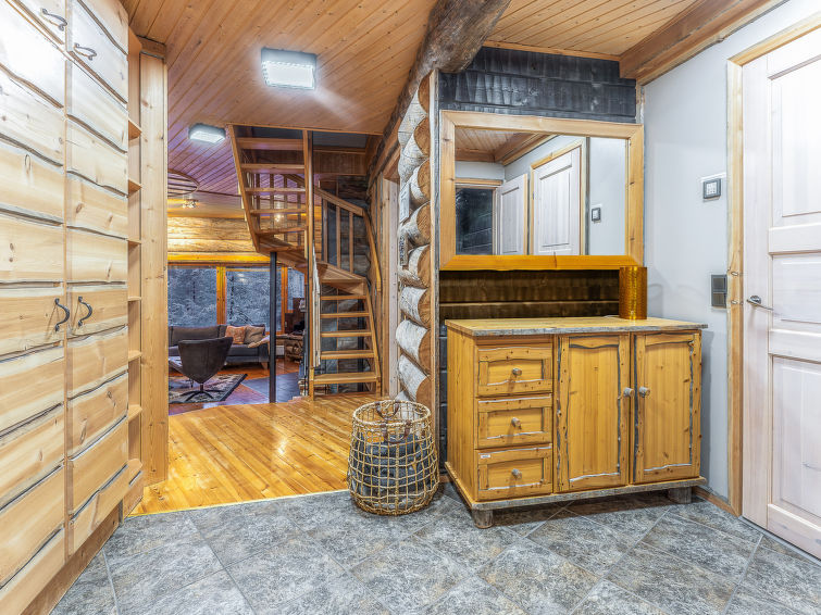 Well decorated quality log cabin located close to all the services of Pyhätunturi area. There is a beautiful view to the Pyhätunturi fell from the living room. Suitable for both families and business meetings. Excellent location with a walking distance to the slopes, skiing tracks and restaurants.