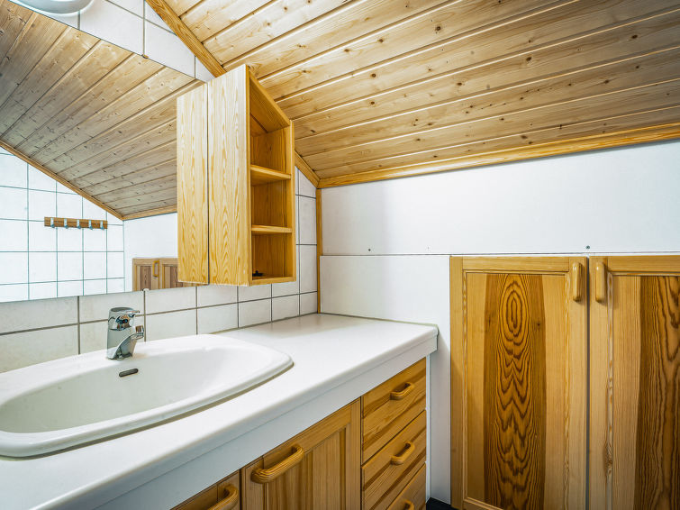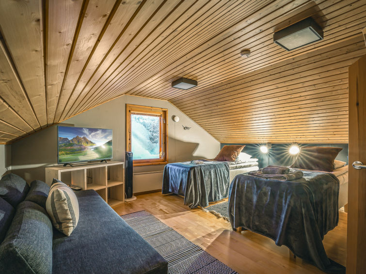 Upstairs: loft, bedroom with double bed (180 cm), bedroom with two separate beds and sofa bed for two (180cm) and toilet.
