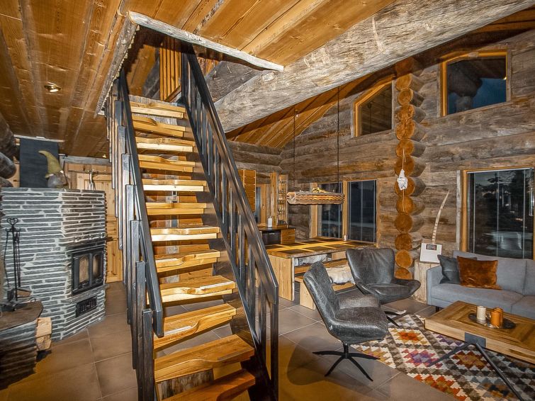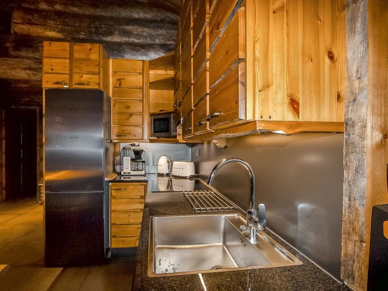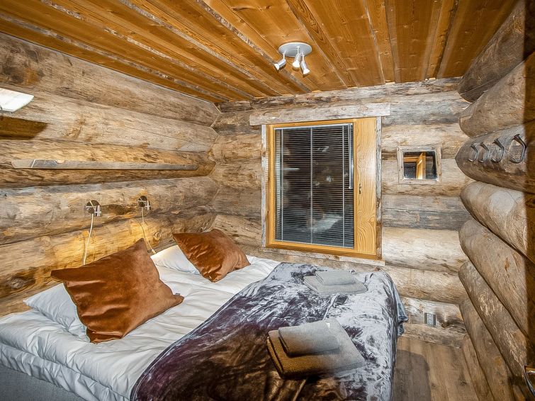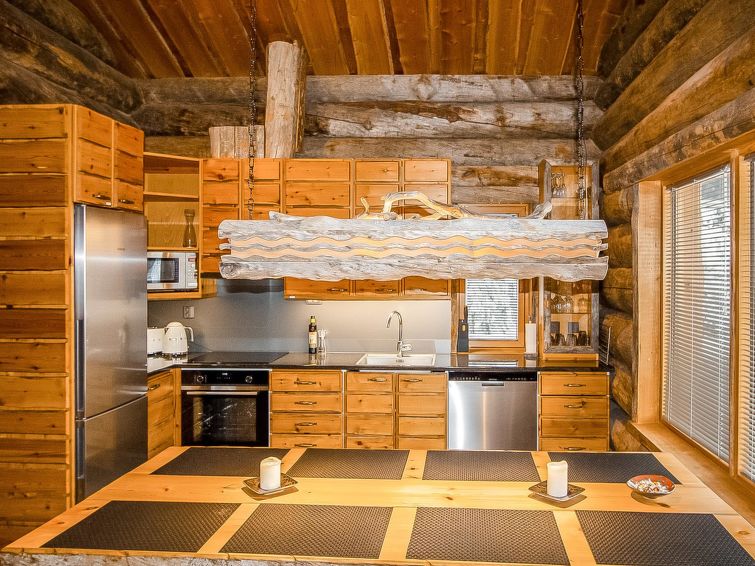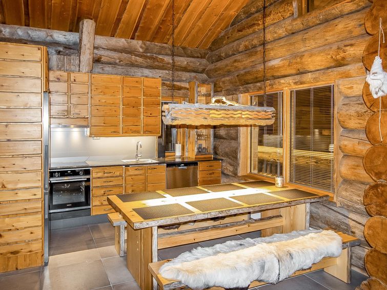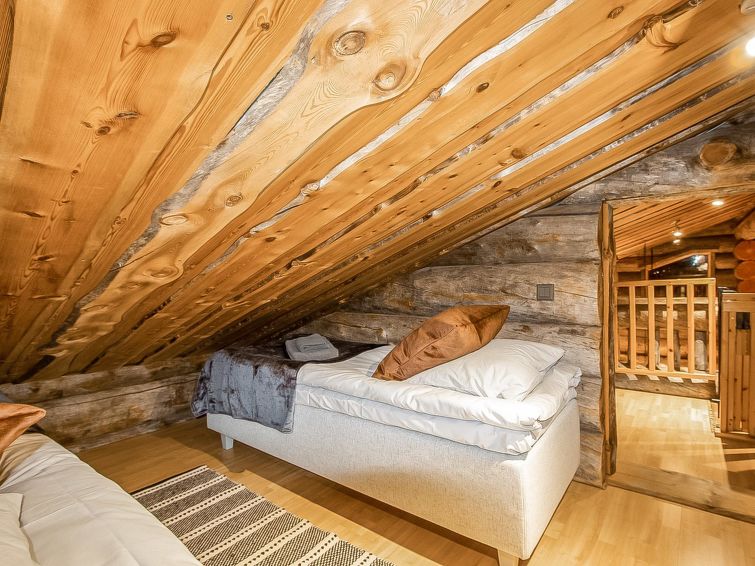 25 km north of Kuusamo, Vuosseli (Eastern Ruka) 800 m. High level log cottage, built in 2003, bedrooms 1-2: 2 beds, bedrooms 1-2 on loft: 2 beds, combined kitchen/living room, electric sauna.