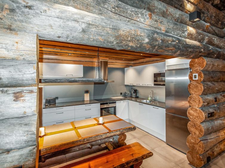 Atmospheric, high quality cabin with lots of space on excellent location right next to the skiing-tracks. Distance to the skibus stop is only a few hundred meters, and 1km to the shops and ski-lifts. There is a beautiful view to the Pyhätunturi fell from the cabin's living room, and there is an easy access to hiking trails and snowmobile tracks. Ideal for family vacations and business meetings in every season.